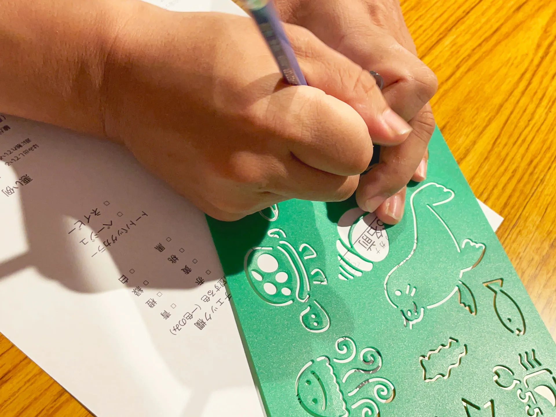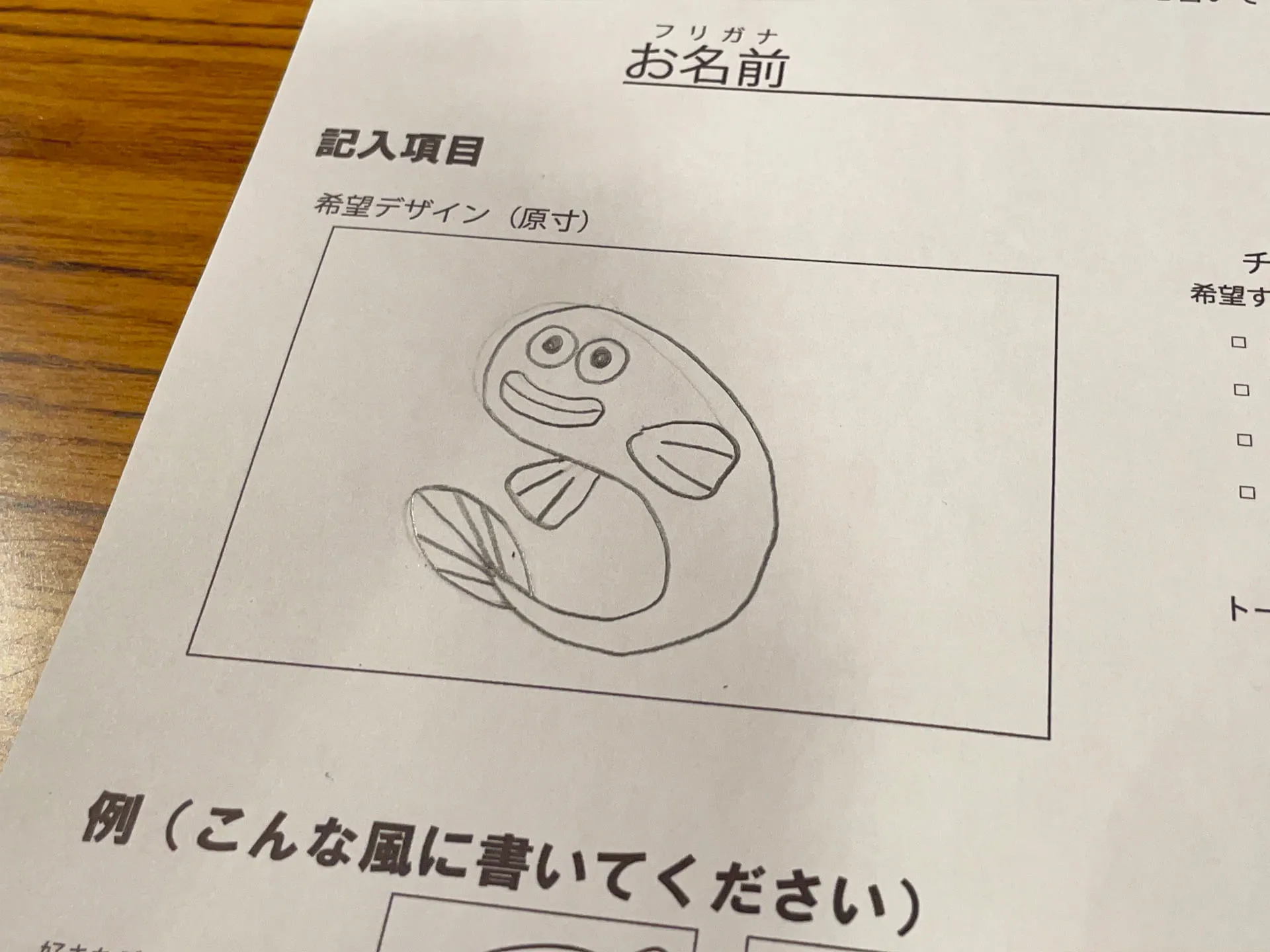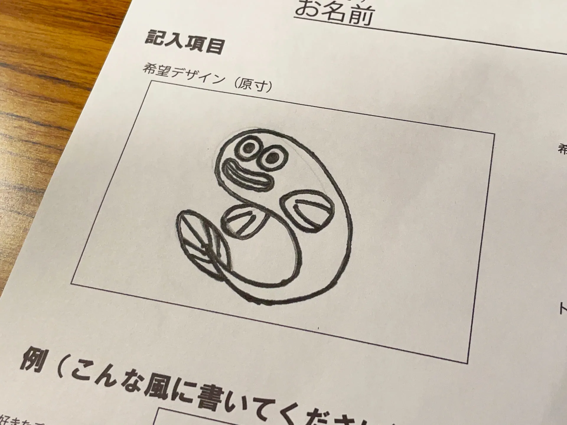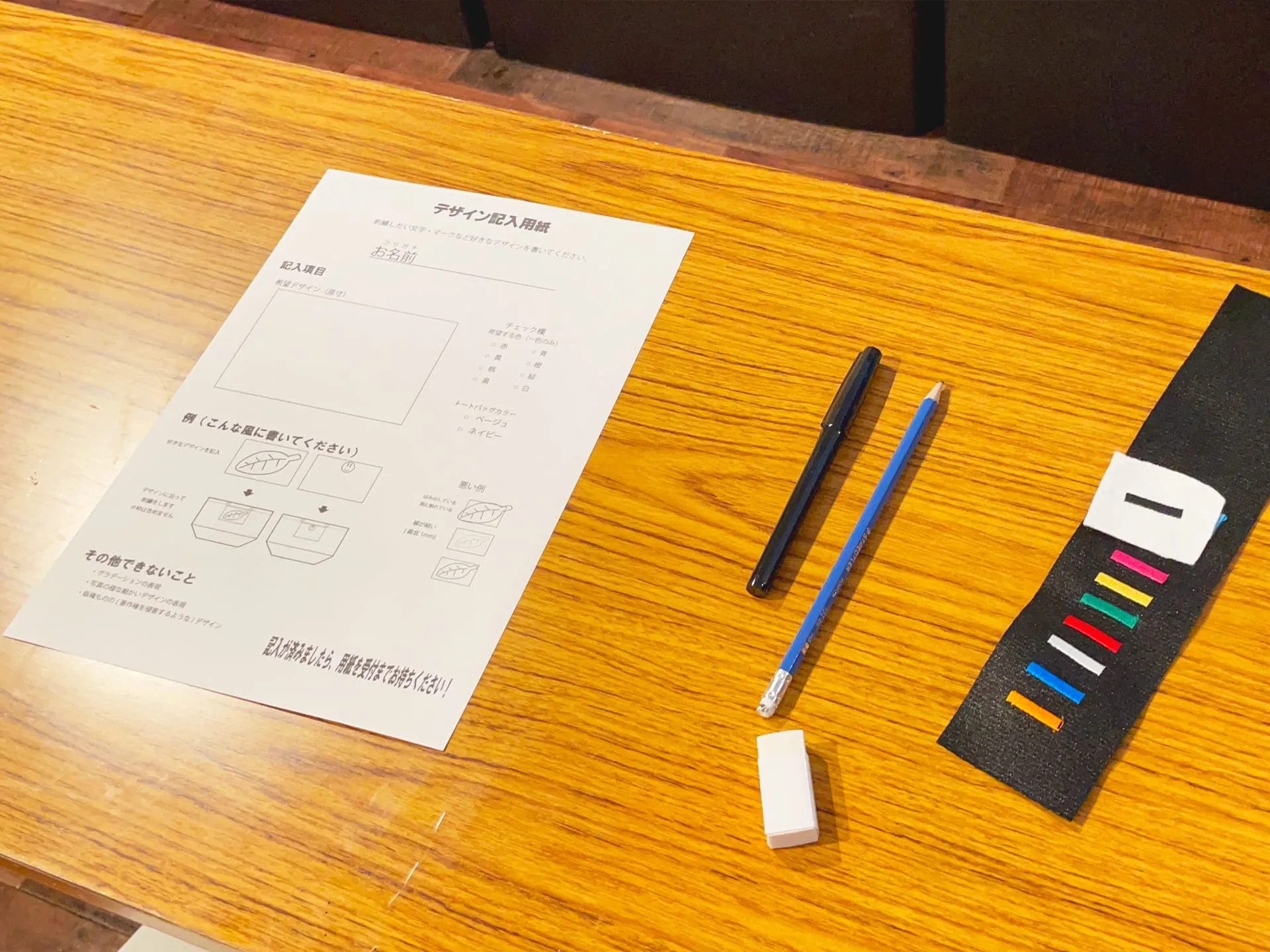 用紙に書きたいイラストを描いて提出するだけの簡単手順で、さらに会場には簡単なデザイン例なども用意してあって、絵を描くのが苦手という方でも安心です。