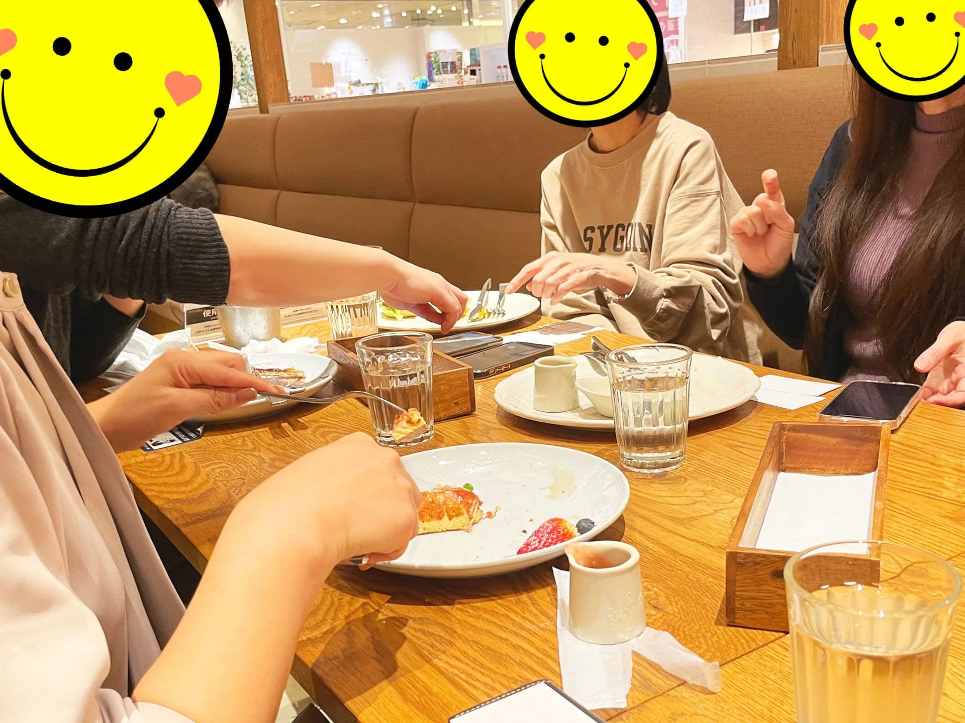 これまで、いつも決まった場所でカフェ交流会を開催することが多かったので「これまで行ったことのないカフェに行ってみよう!」という想いと、さらに「女性にもウケそうな場所がいい!」という想いからからいろいろな人にご意見を伺い、オリジナルパンケーキハウス 博多マルイ店さんに初めてお伺いさせていただきました^ ^