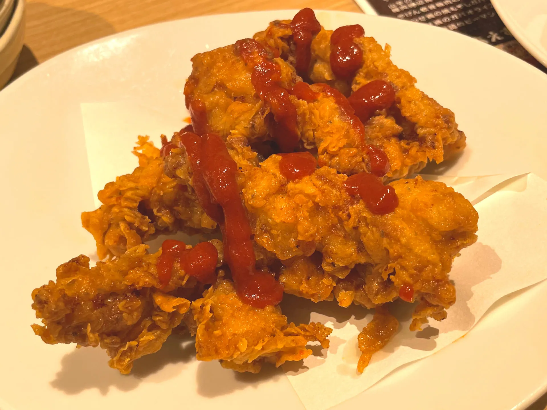 唐揚げなどは食感がサクサクとしていて数種類あるソースもとても美味しく、辛いメニューも辛さが程よい感じでとても食べやすかったです♪
