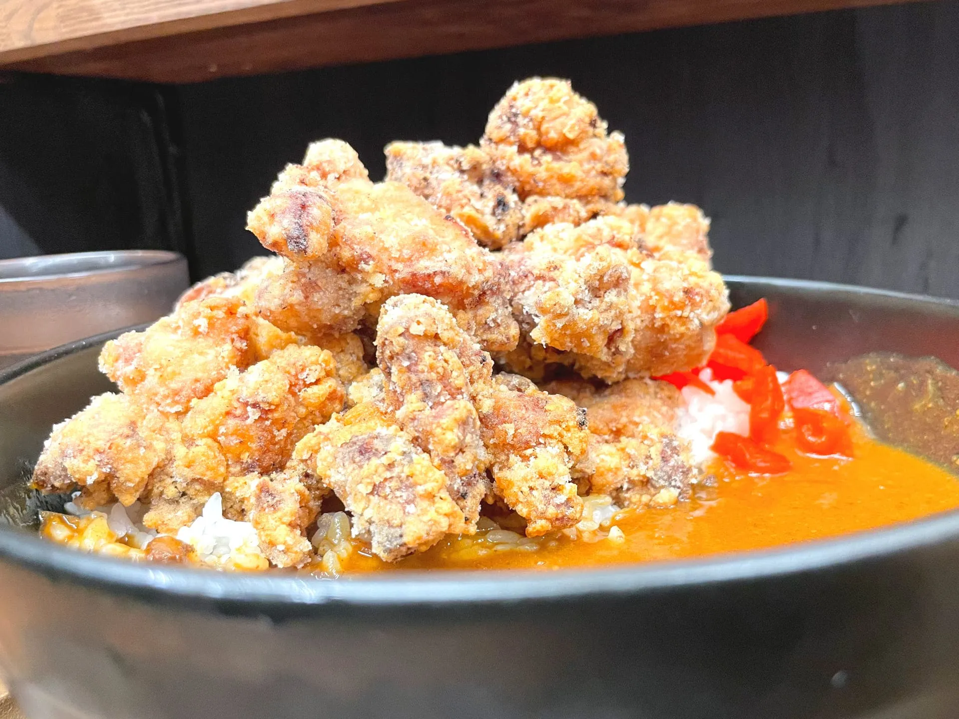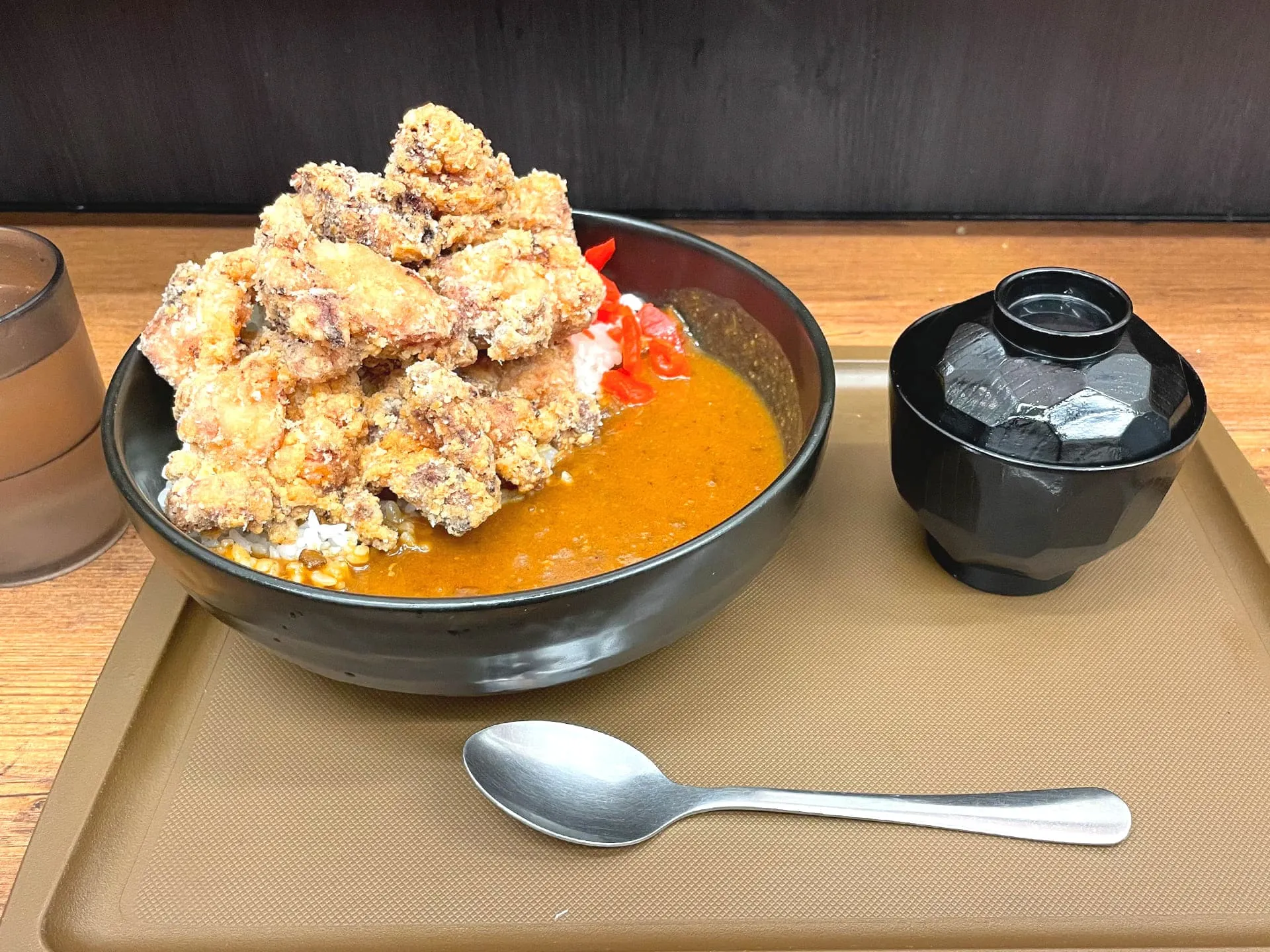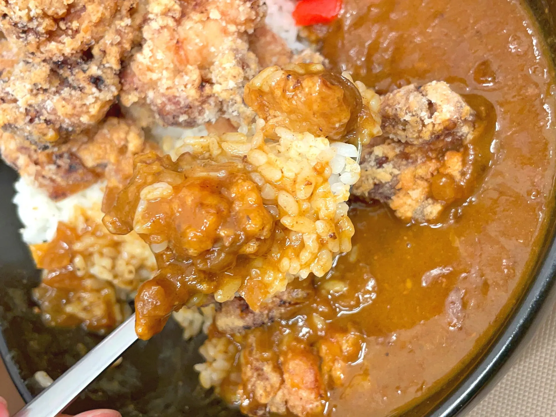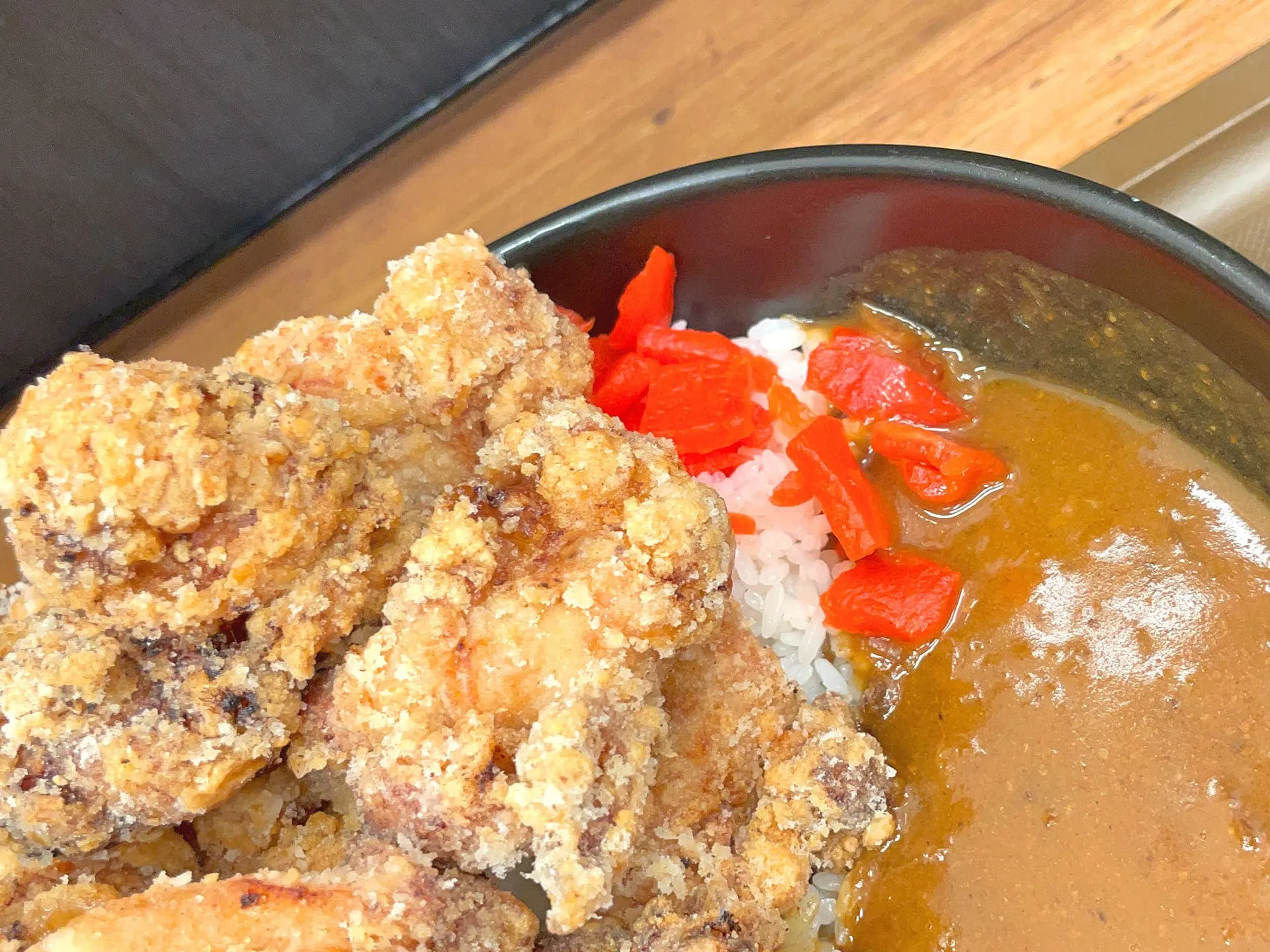 いざ実物を見るとカレーがメインなのか、唐揚げがメインなのか、わからなくなりそうな漢らしいビジュアルです!