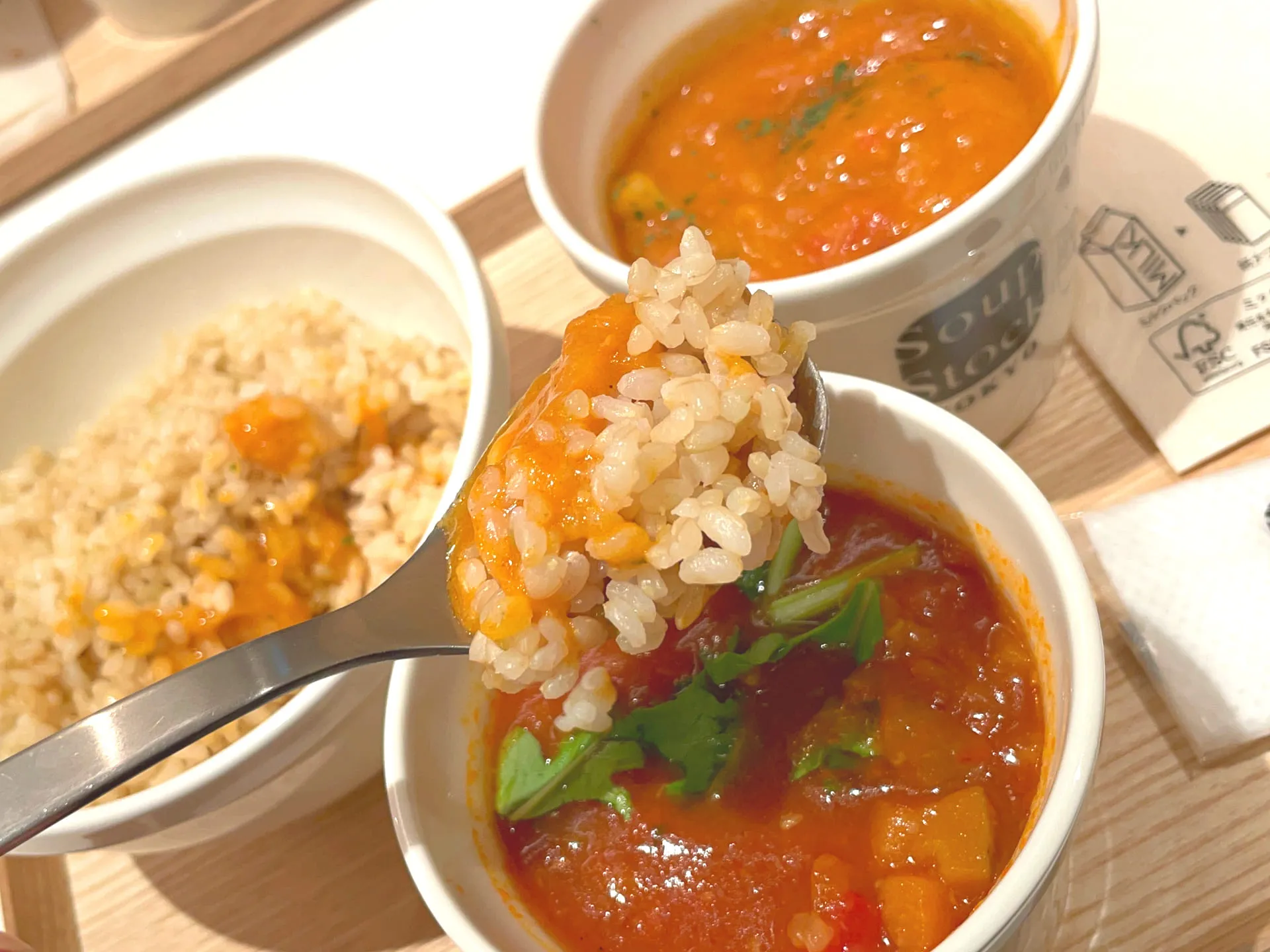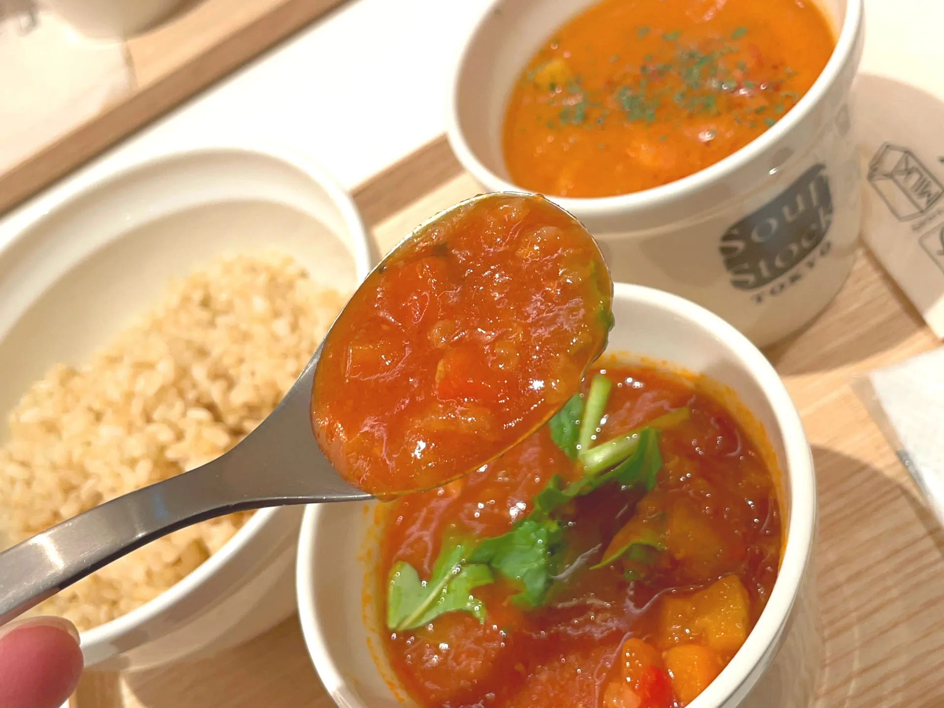 ヘルシーなスープをいただくことができる人気店で、食事もスープとカレーのセットを選ぶことができます^ ^