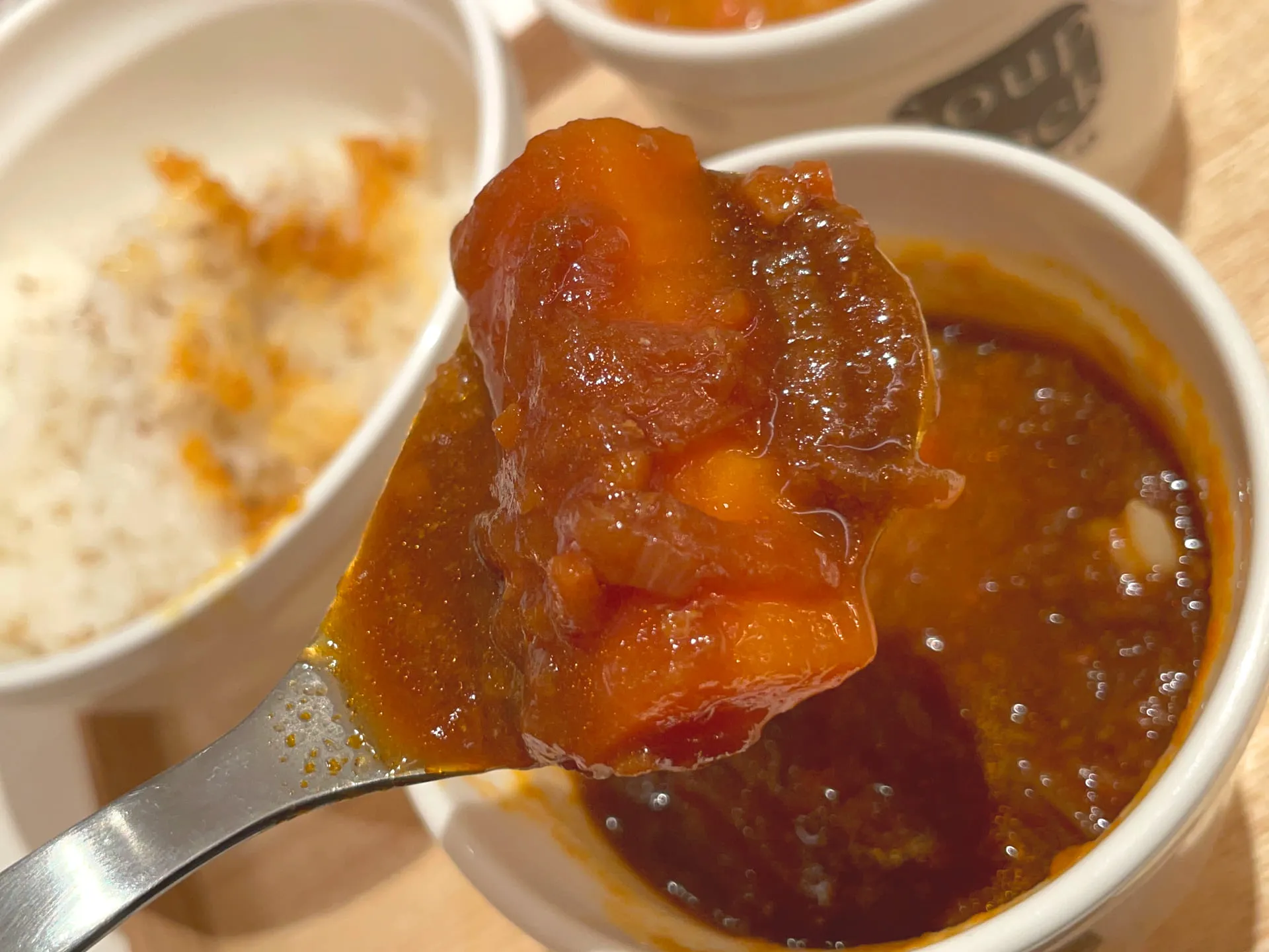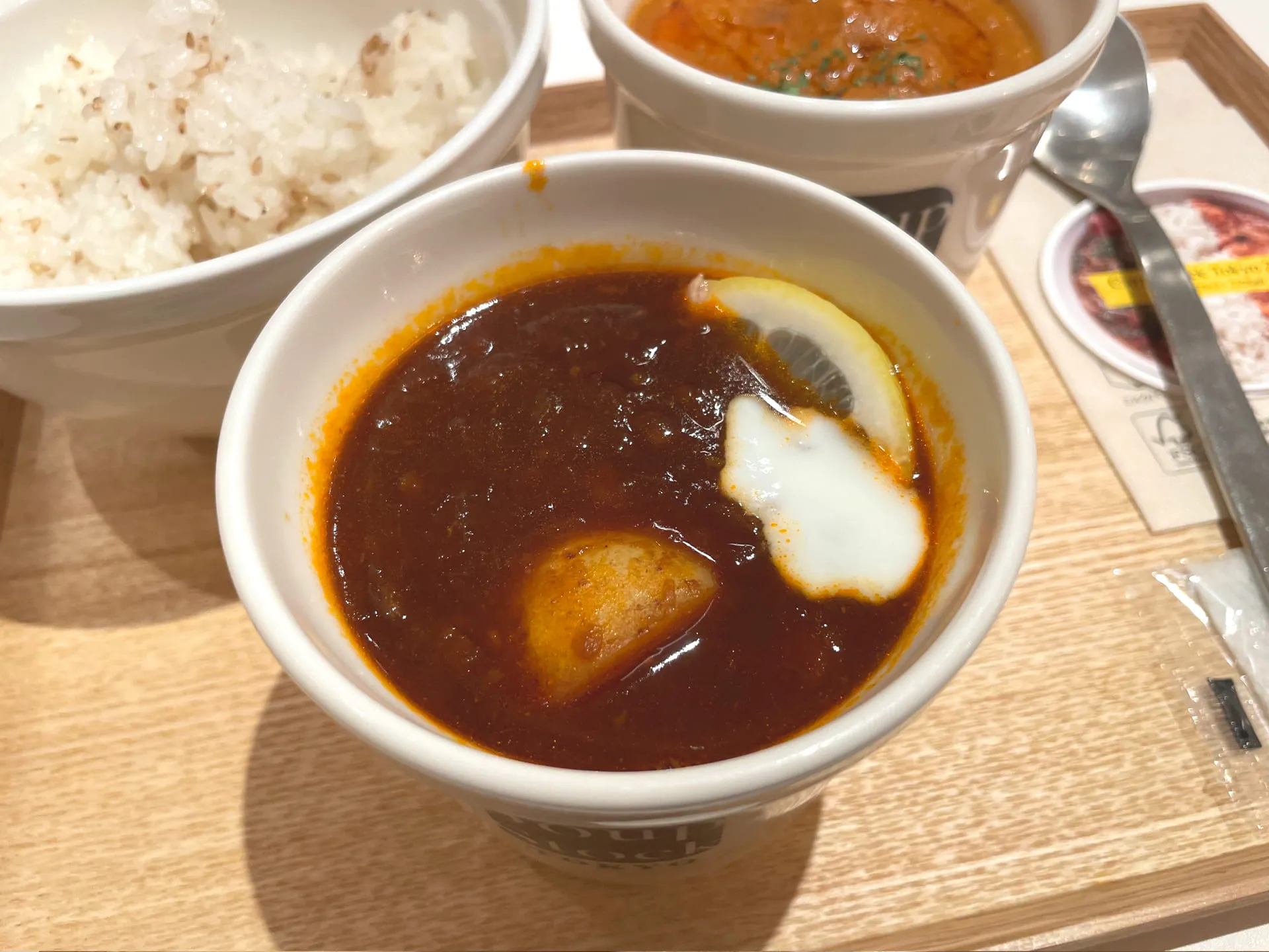 ヘルシーなスープが人気で、スープとカレーのセットを食事として選ぶことができます^ ^