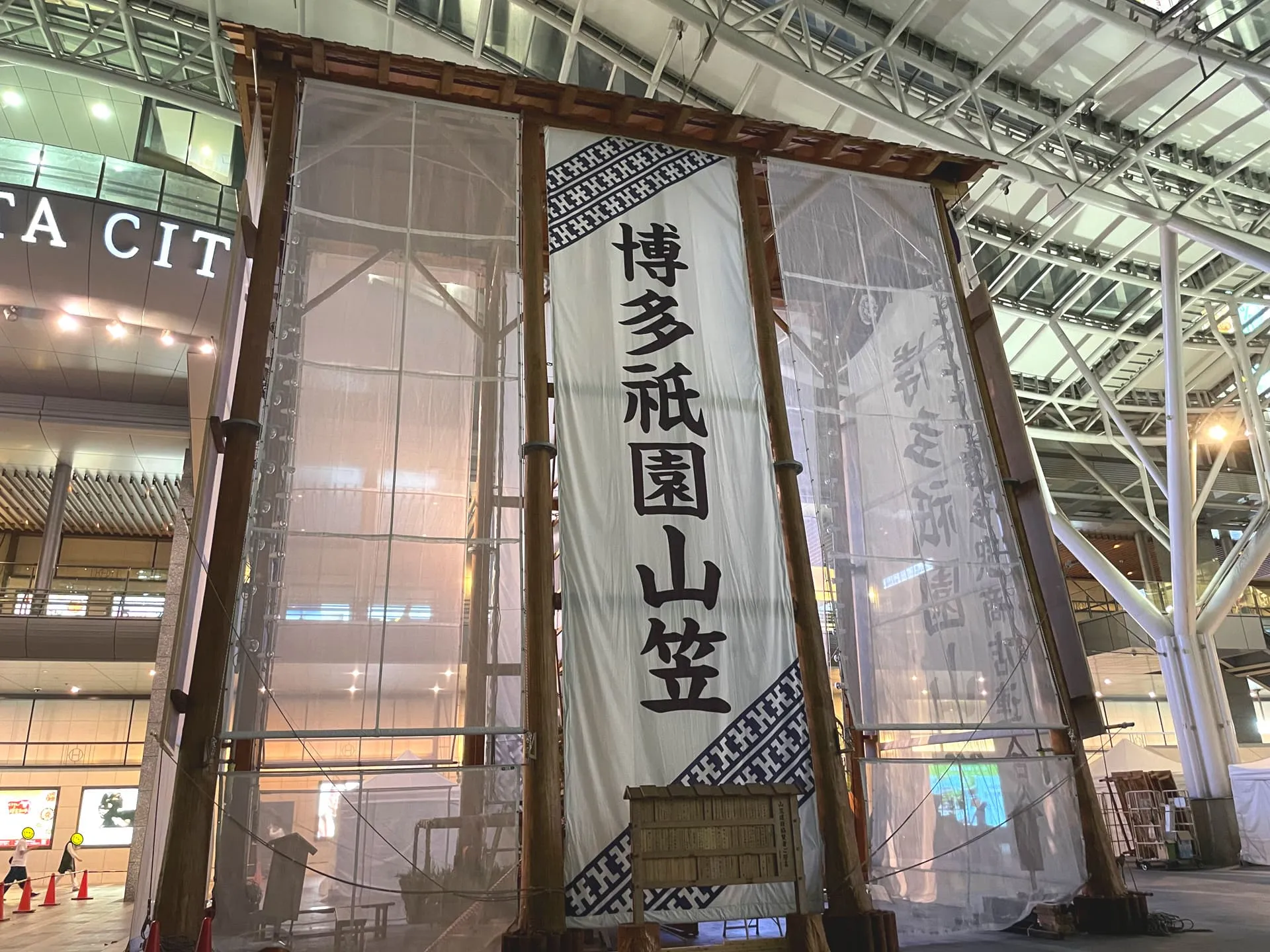会場に向かう途中、博多駅広場に立ち寄り、もうすぐ始まる博多祇園山笠の雰囲気を肌で感じながら会場に到着しました。