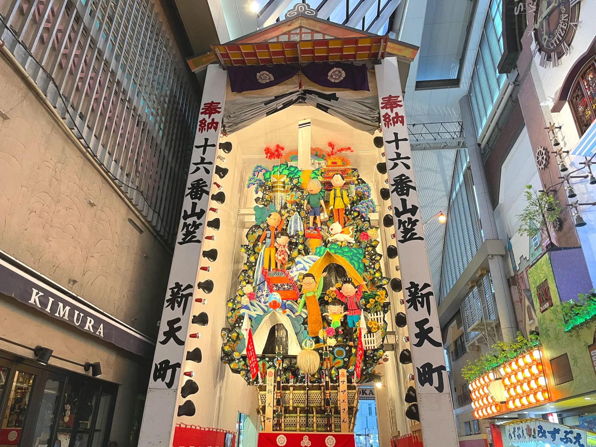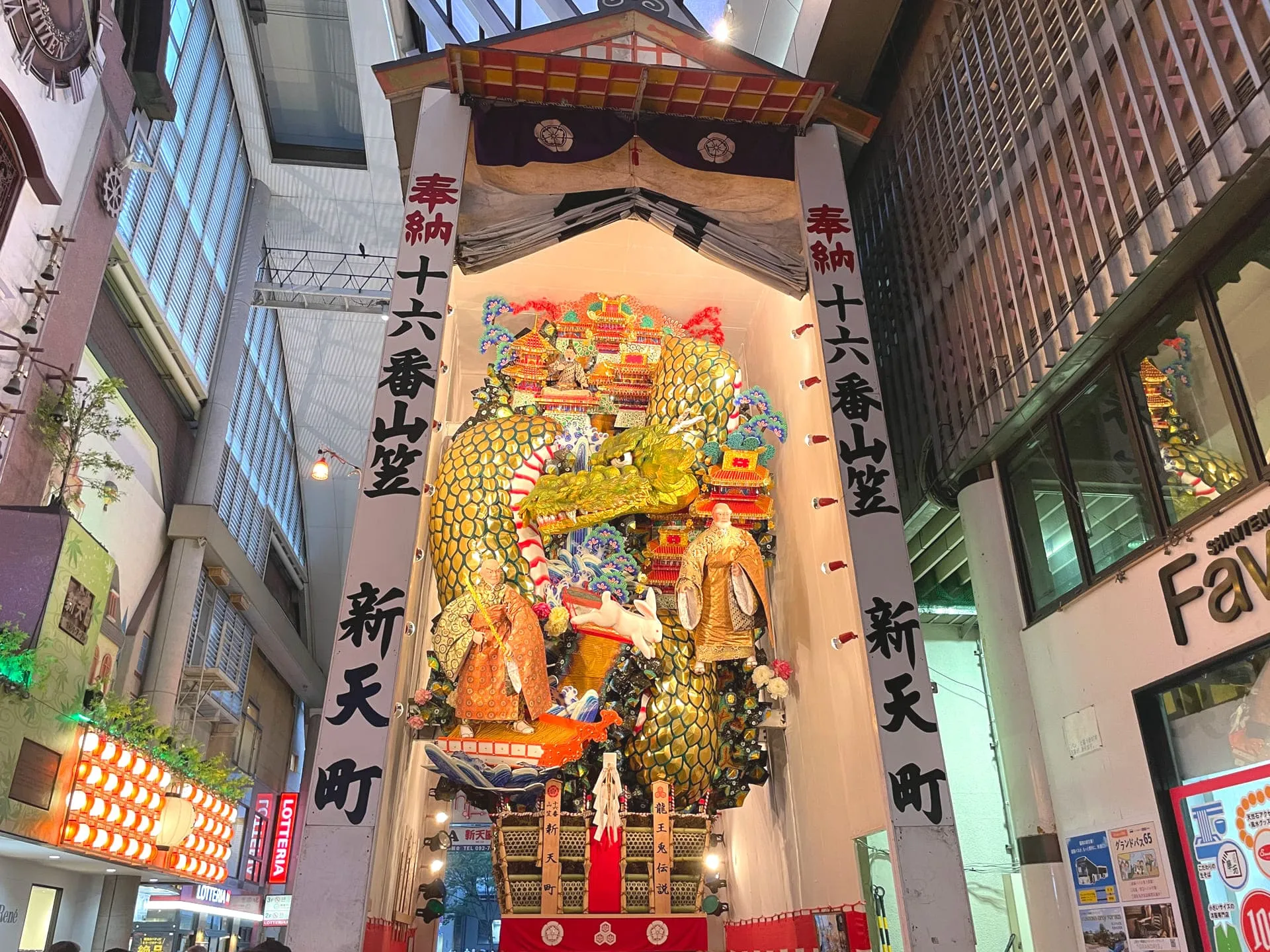 福岡に戻ってすぐ、次の日には博多祇園山笠が行われるので、新天町に設置してある飾り山を見学しました。