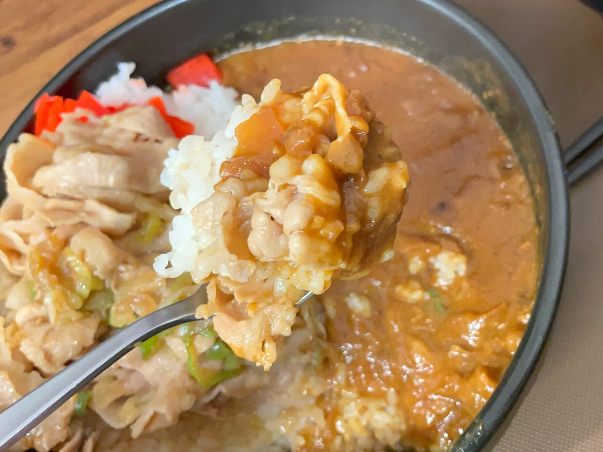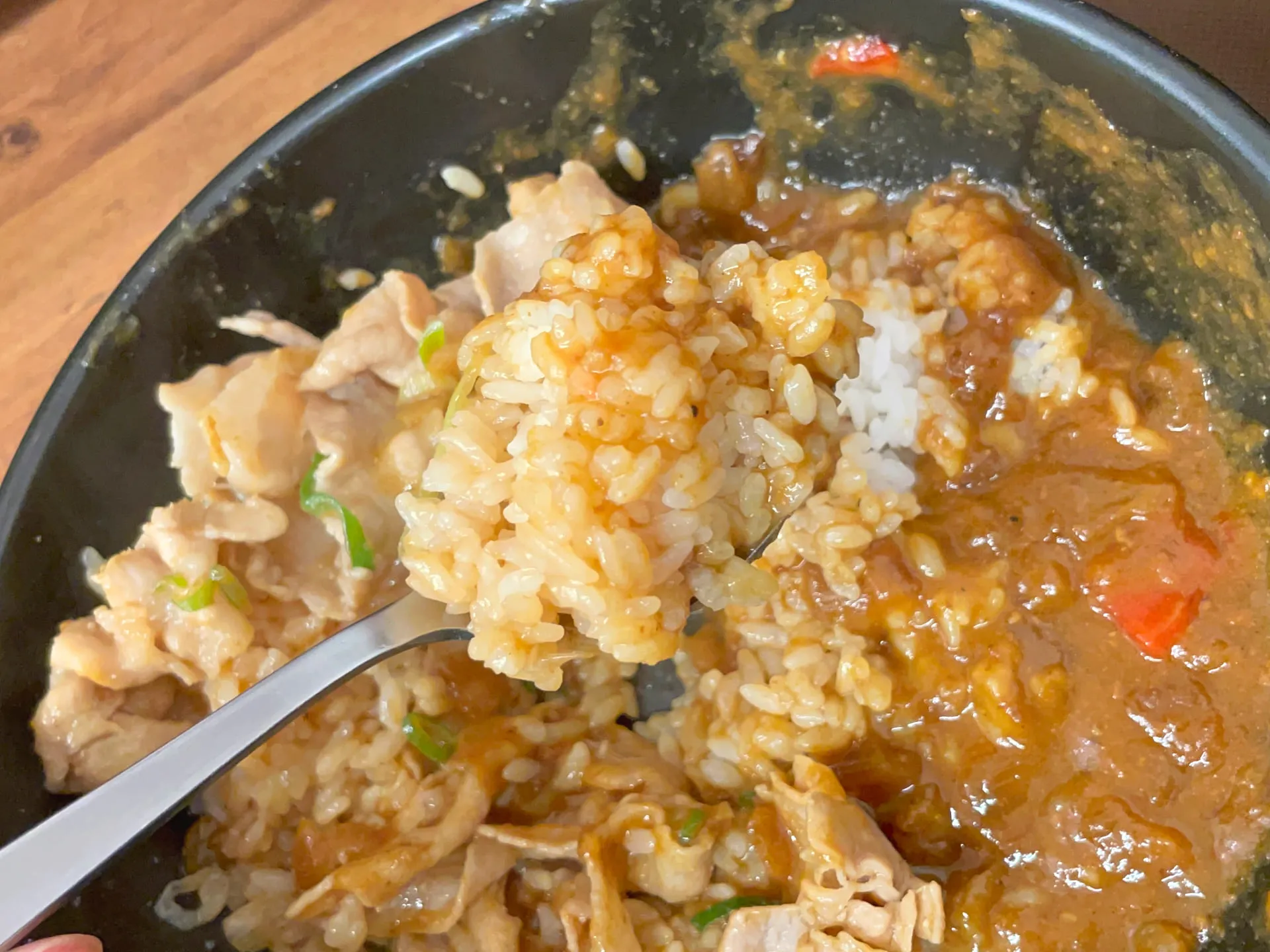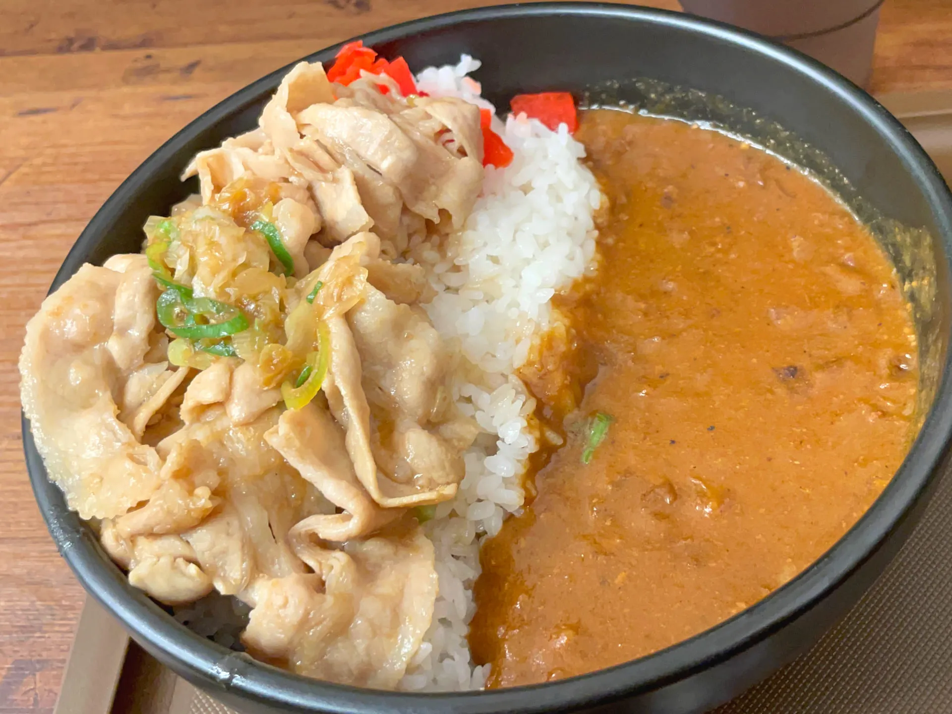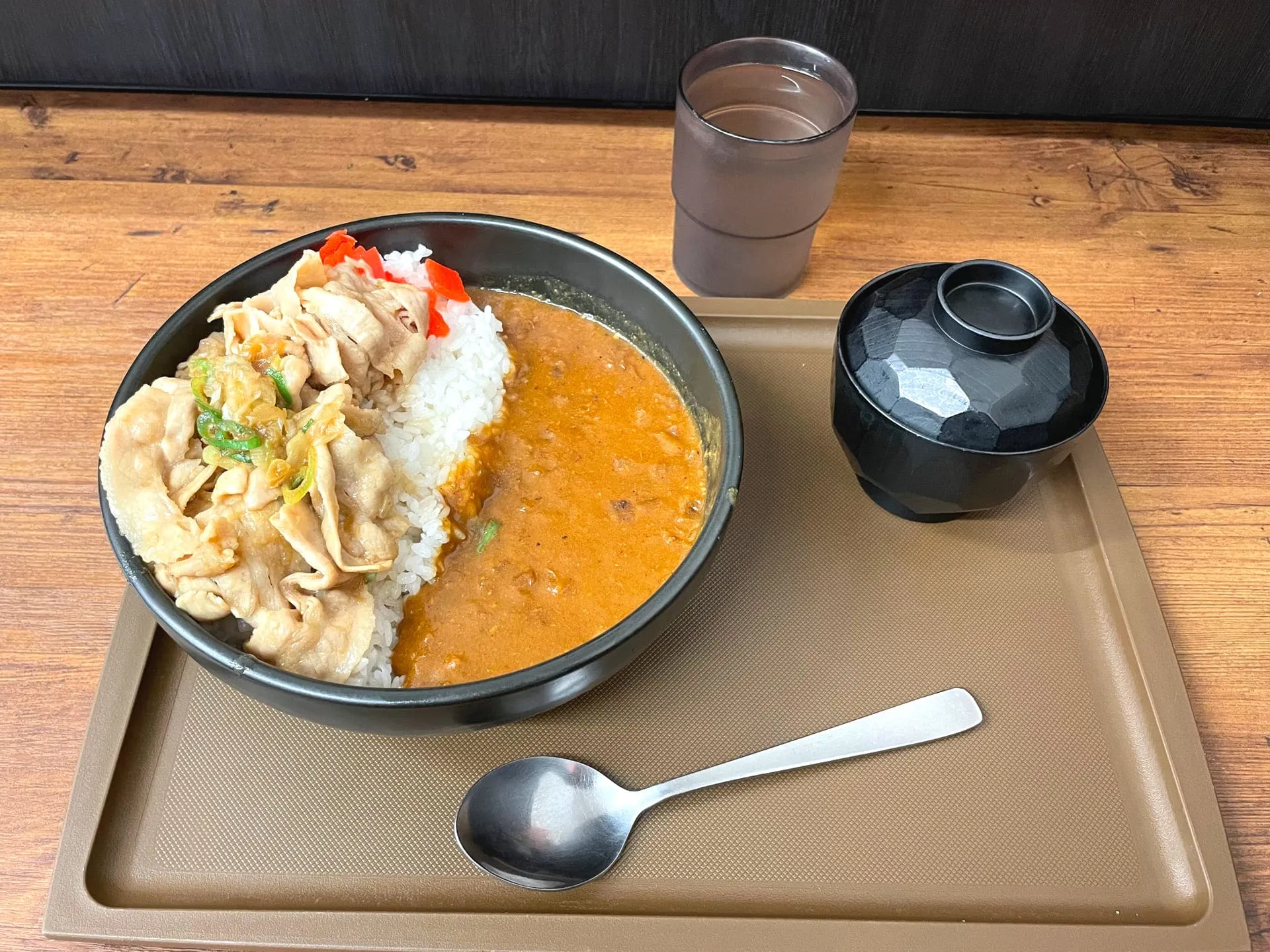 「伝説のすた丼屋」では、有名な「すた丼」が提供されていますが、ちょっと変わった注文をして、2人とも「すた丼カレー」を肉増しで注文しました!
