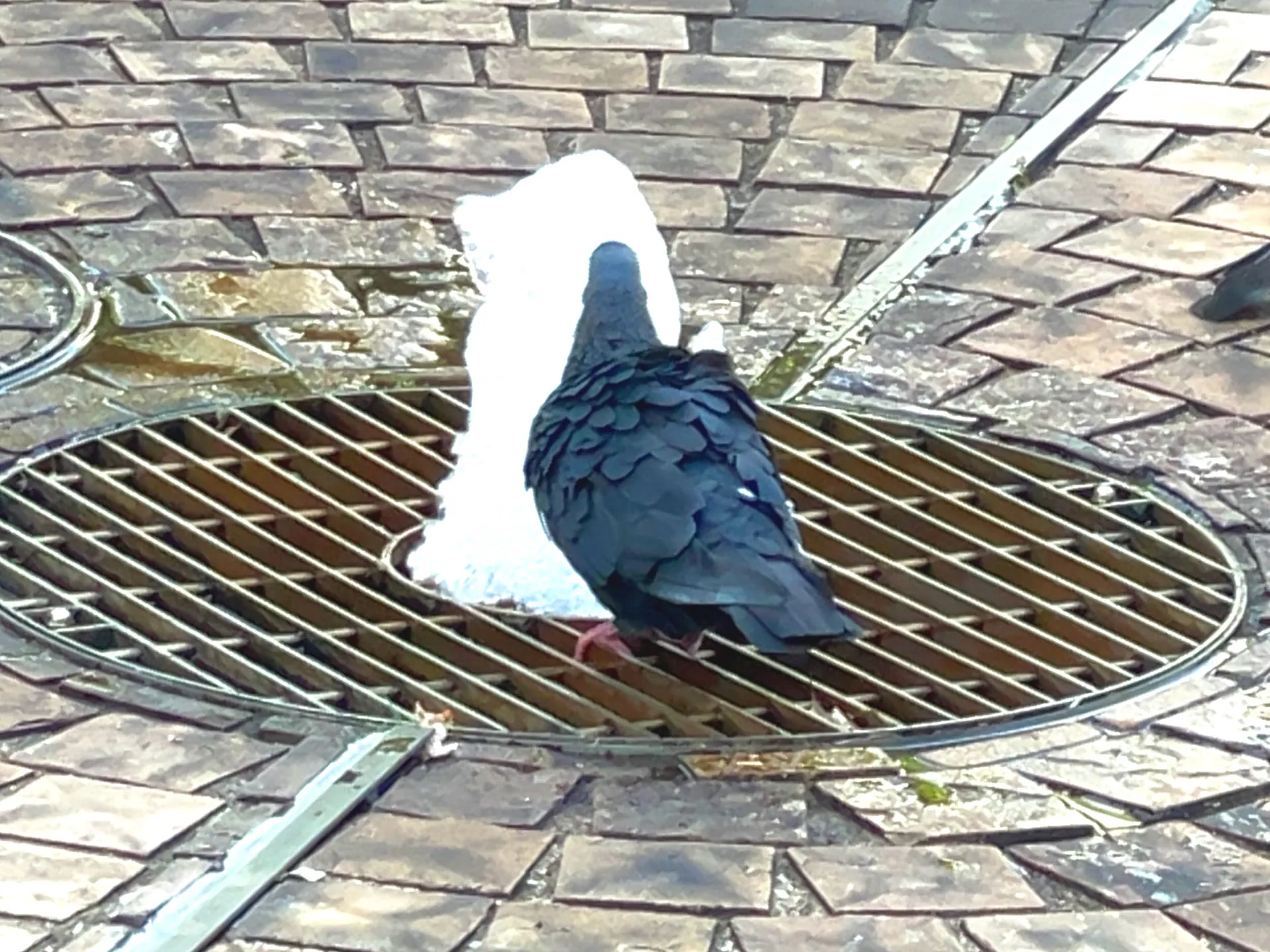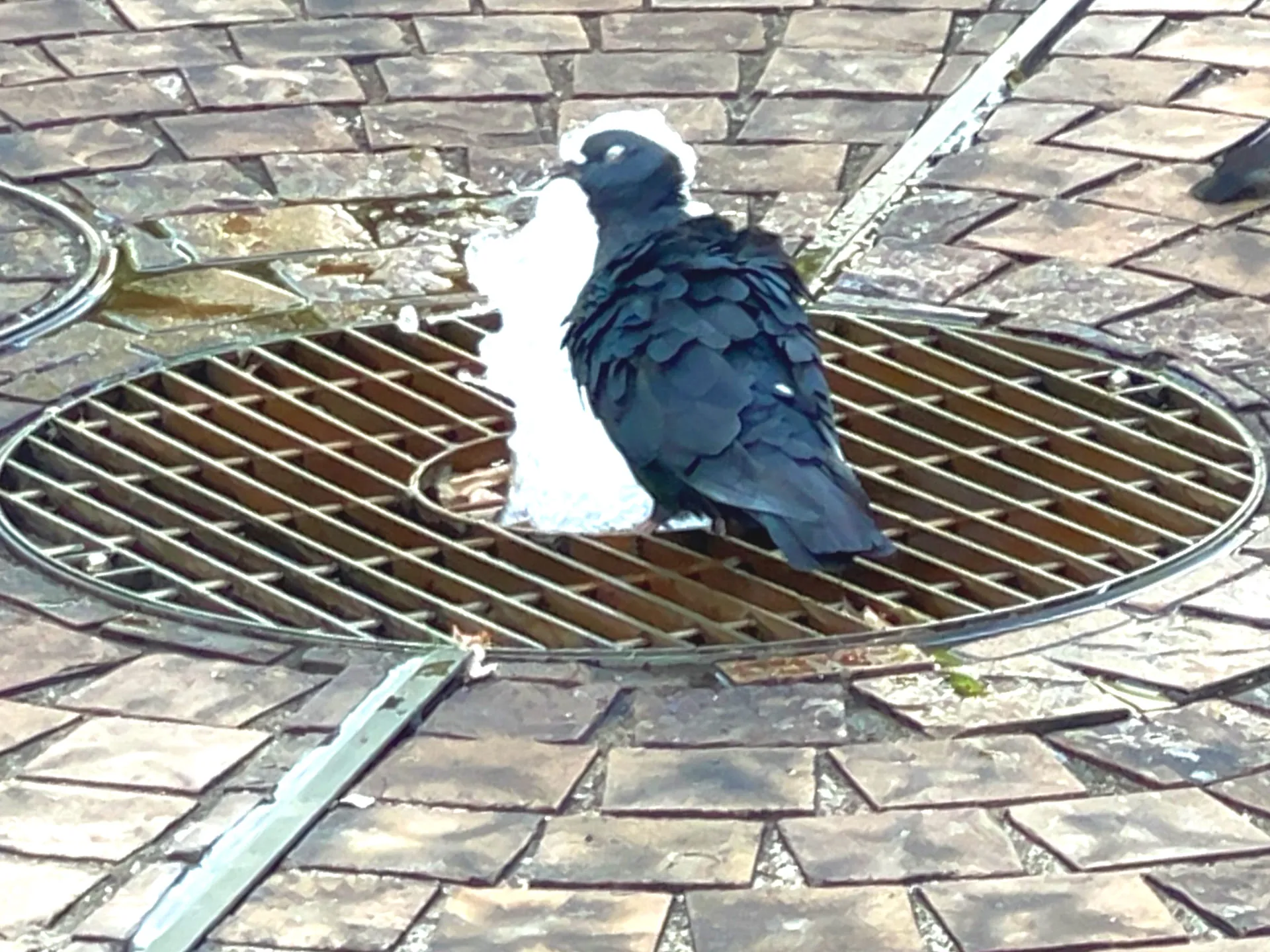 公園の鳩たちも噴水の水しぶきを楽しんでおり、清掃活動の幕開けを華やかに演出していました。