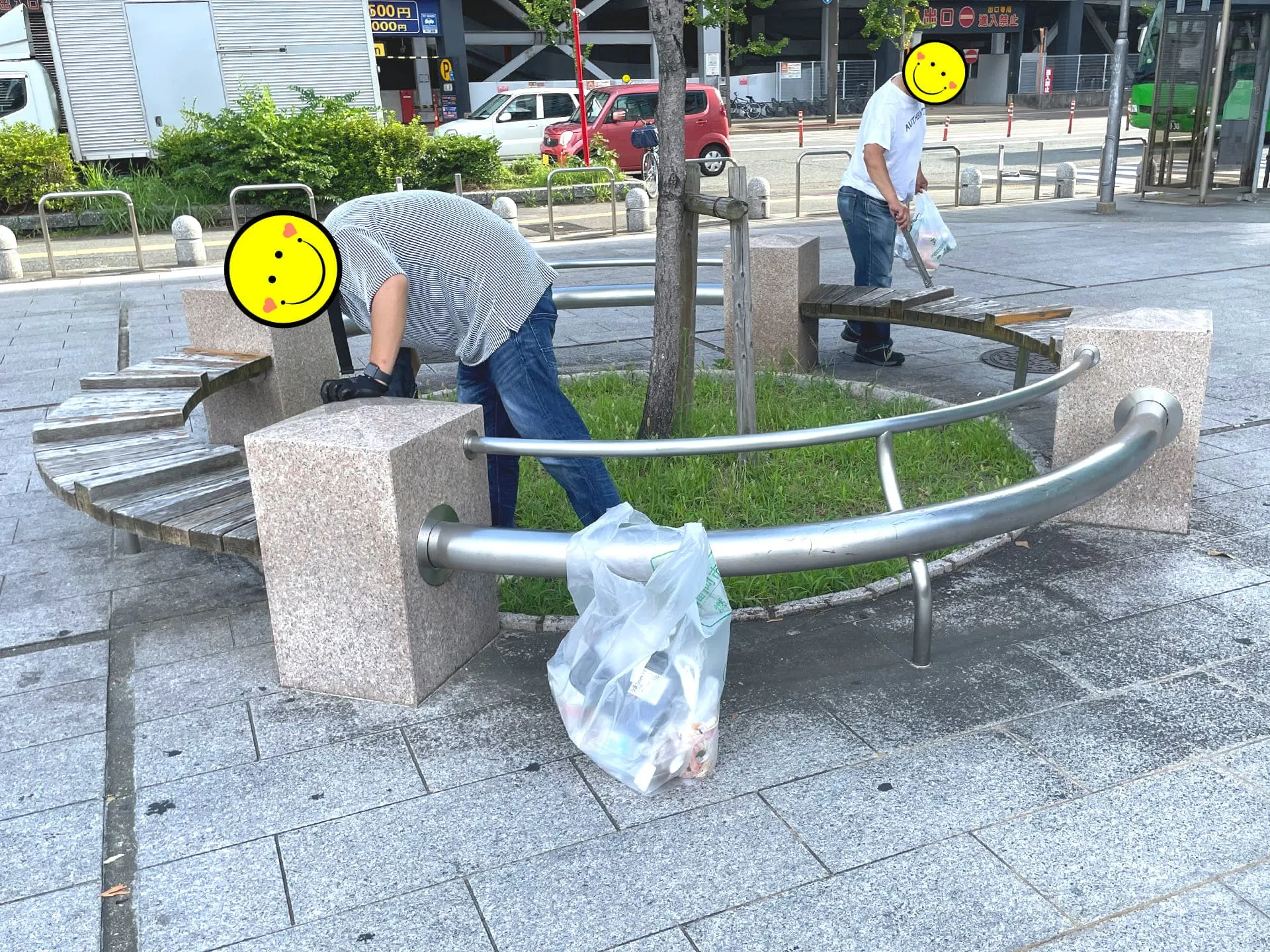 雨天中止が続いた後、数カ月ぶりのゴミ拾いボランティアでしたが、私たちは地面やベンチの周りに広がるゴミに立ち向かいました。