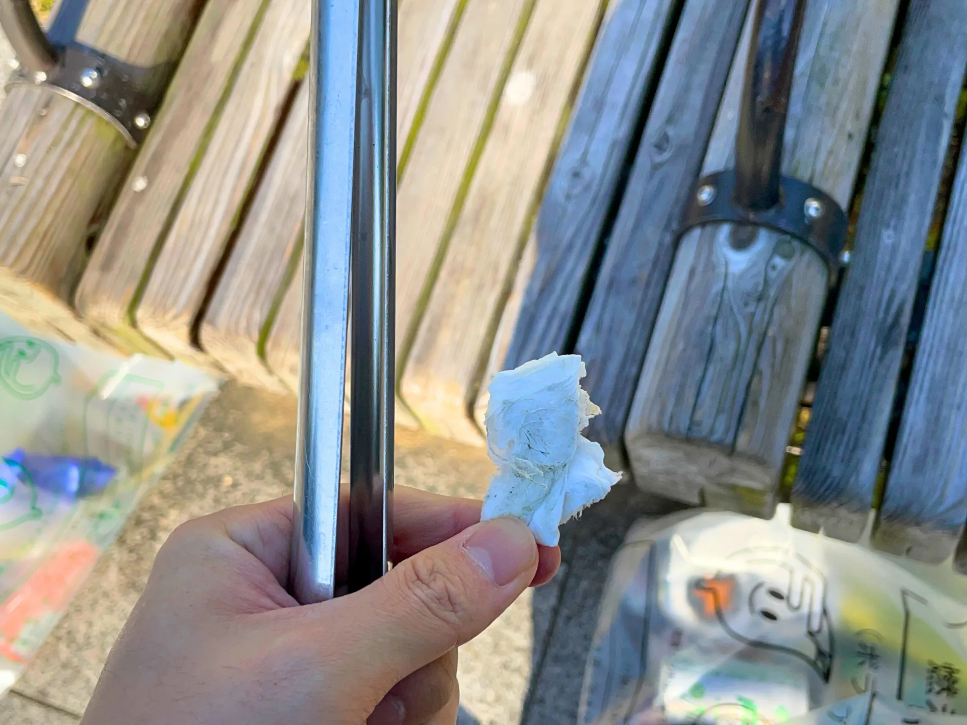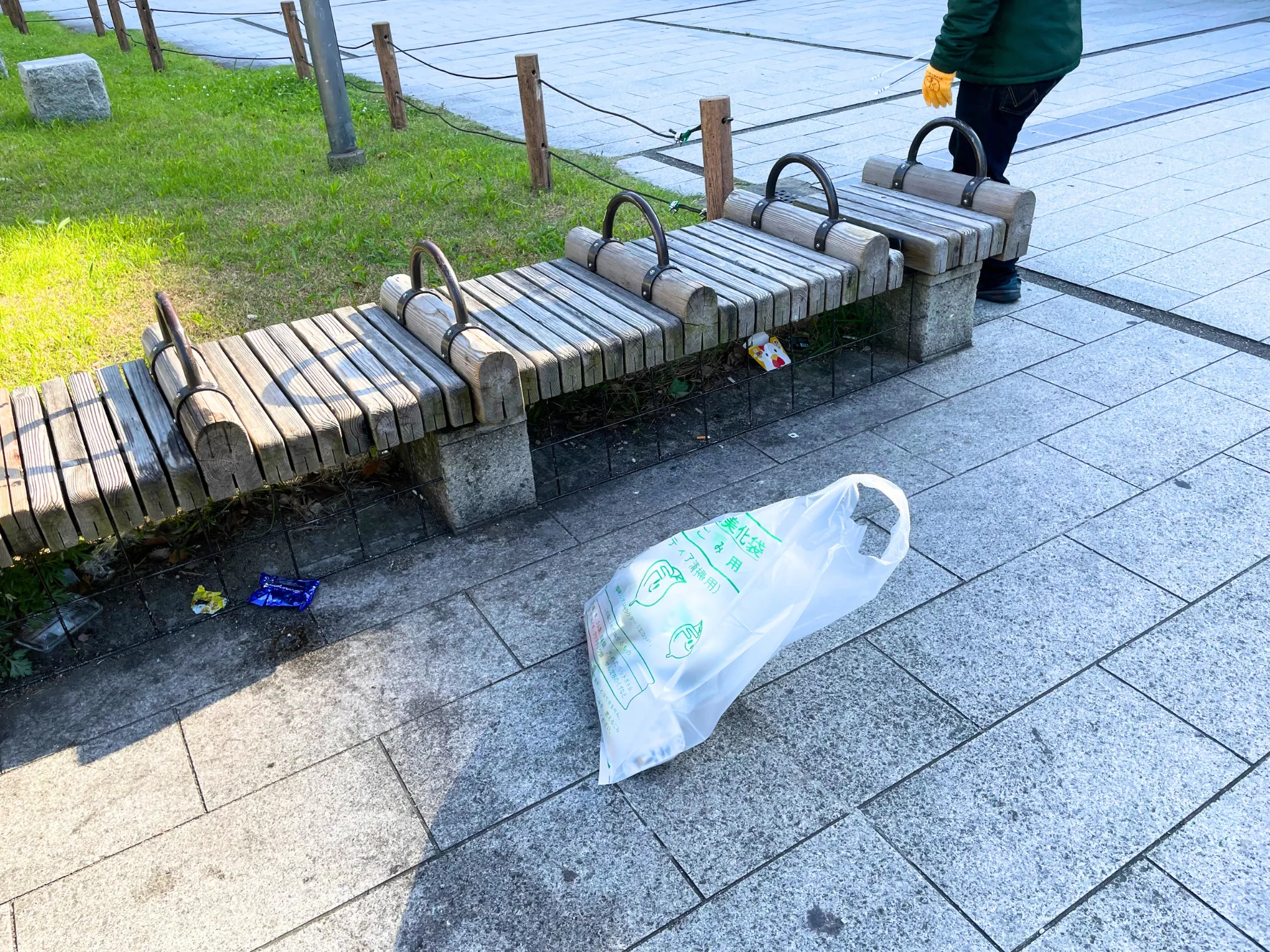 春も終わりを迎え、公園にはペットボトルや空き缶、吸い殻、食べかけのお弁当などのゴミが目立ち、いつも掃除に行くベンチ周りにも、大量のゴミが落ちていました。