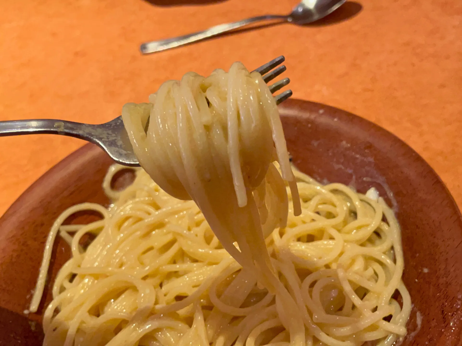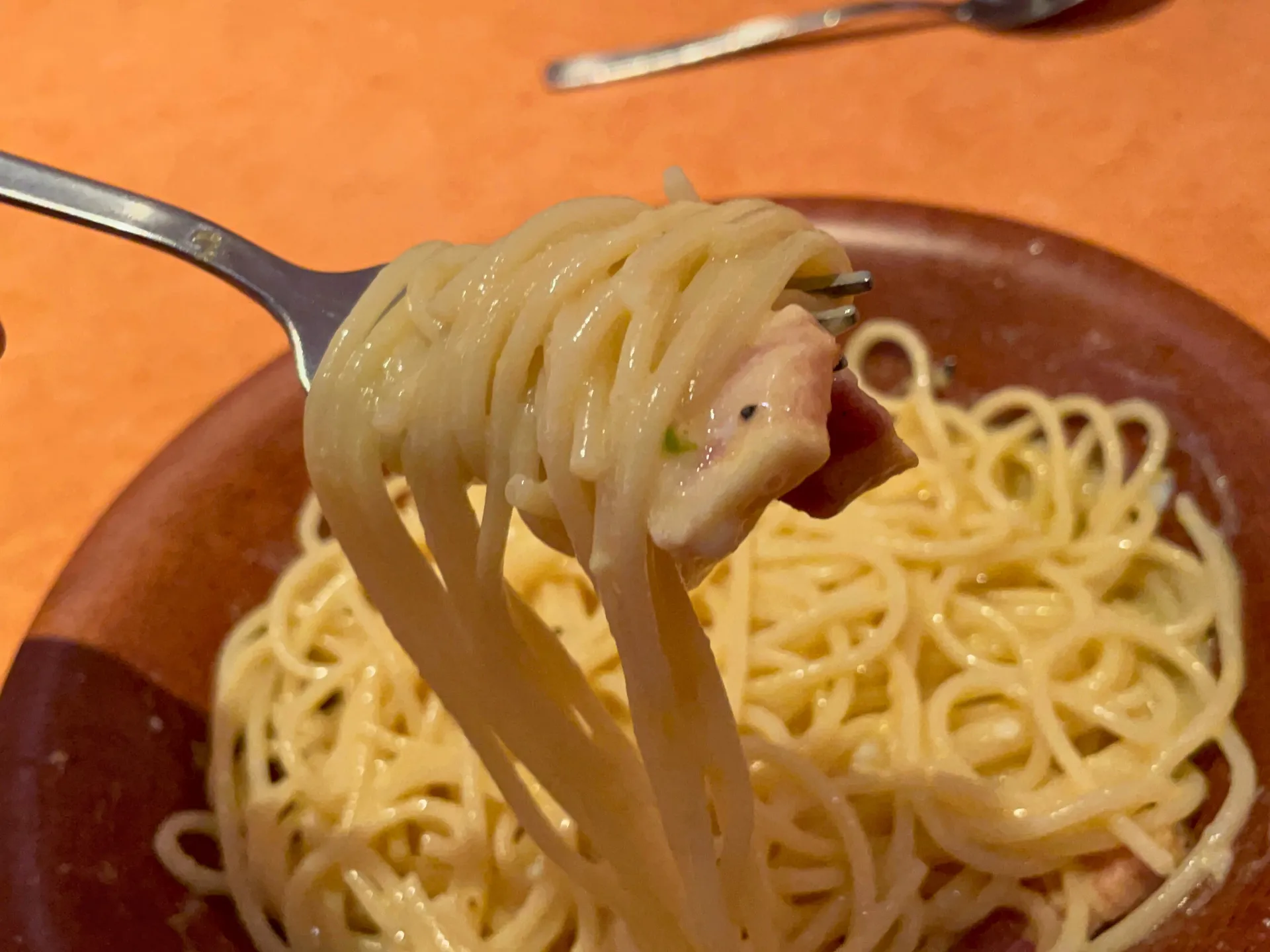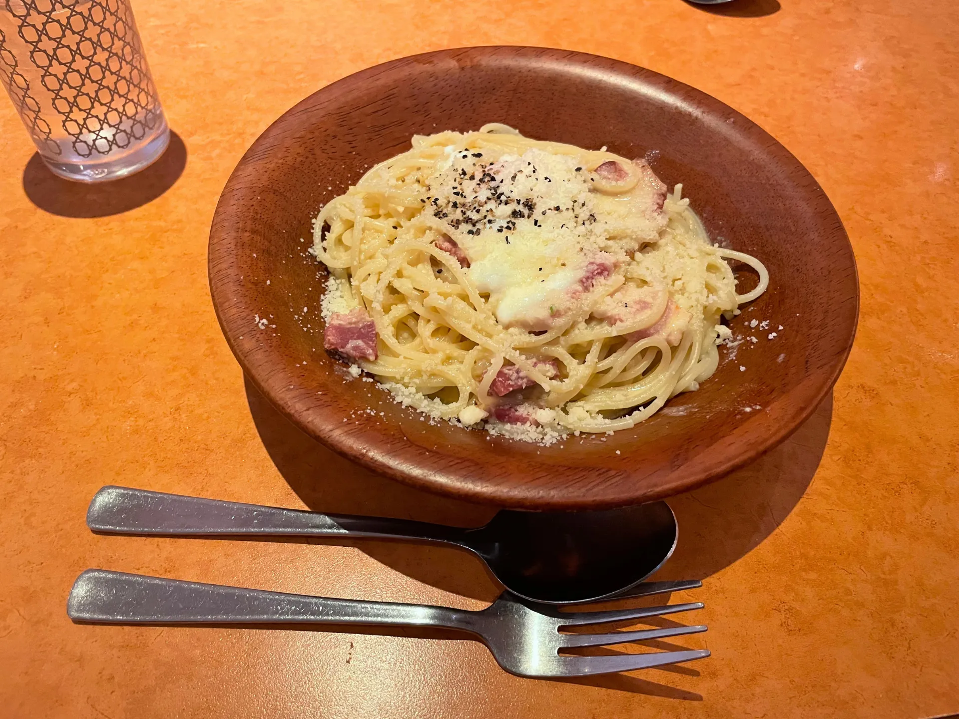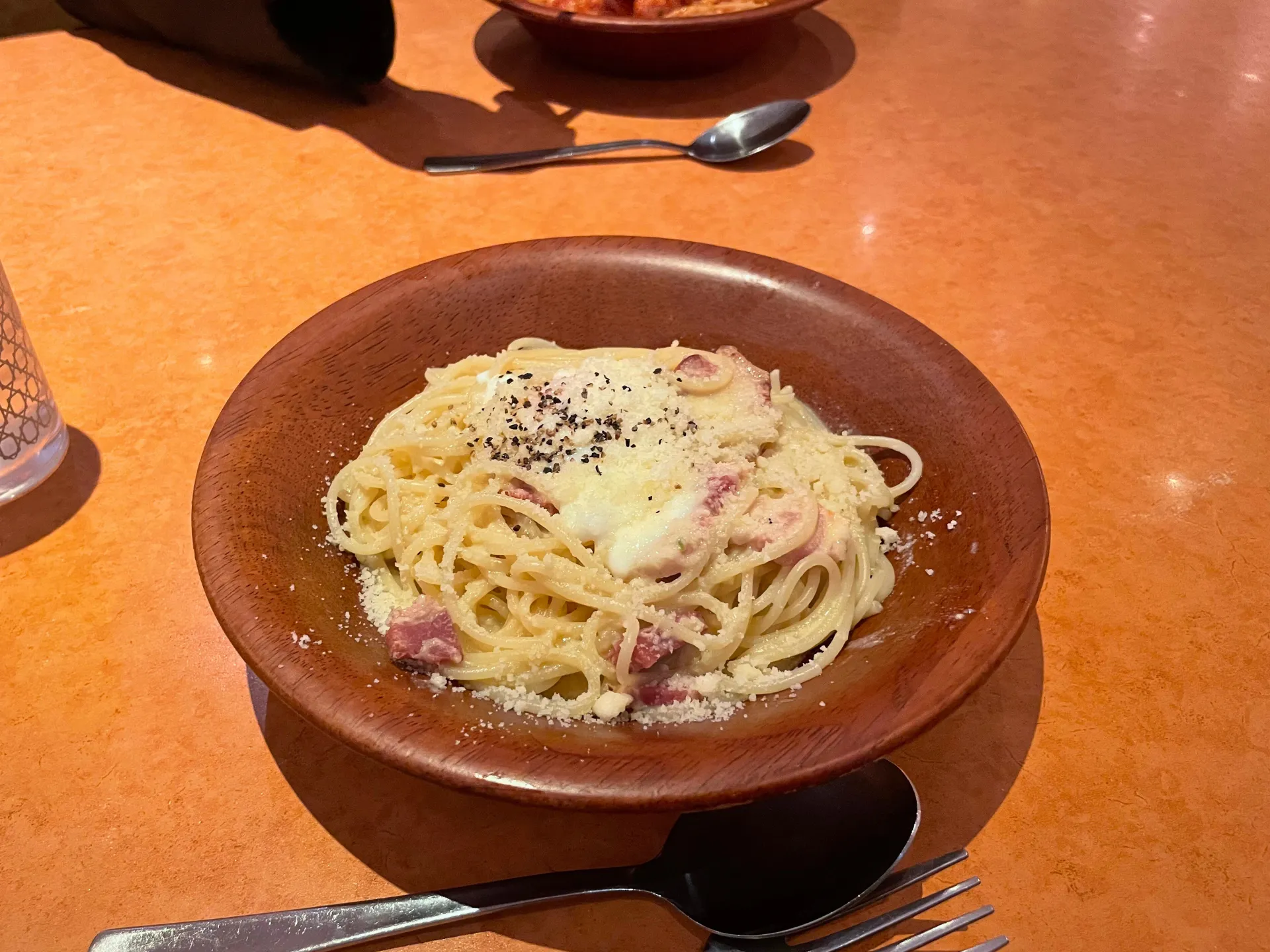 参加者同士で注文したのは、サイゼリヤの人気メニューであるカルボナーラ。