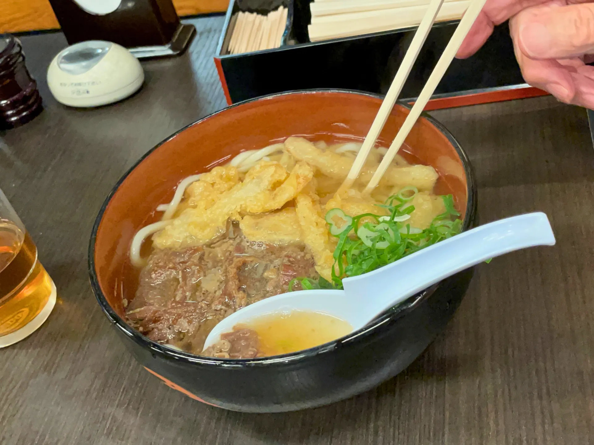 看板メニューは「肉ごぼう天うどん」と「まぜめし」のセットで、冬には「鍋焼きうどん」も人気なのだそうです。