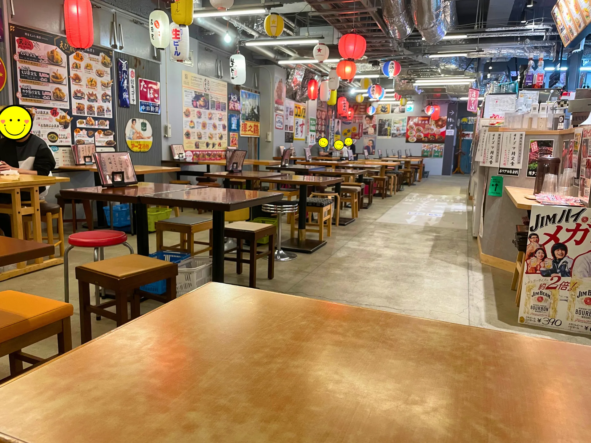 天神うまか横丁に足を踏み入れると、提灯やレトロなポスターが飾られた昭和の雰囲気に包まれます。