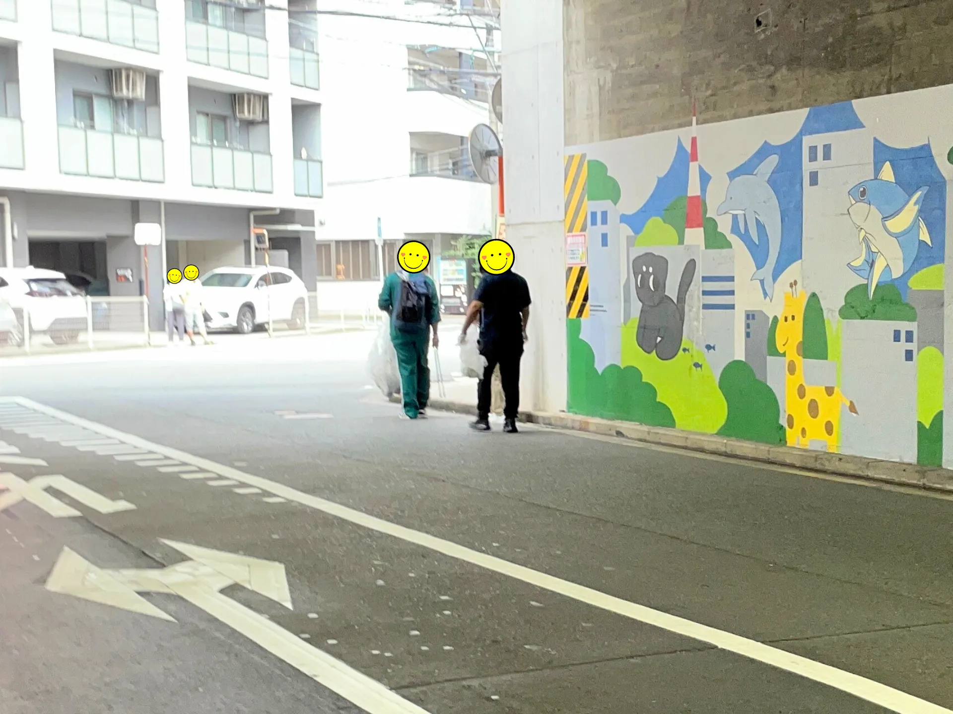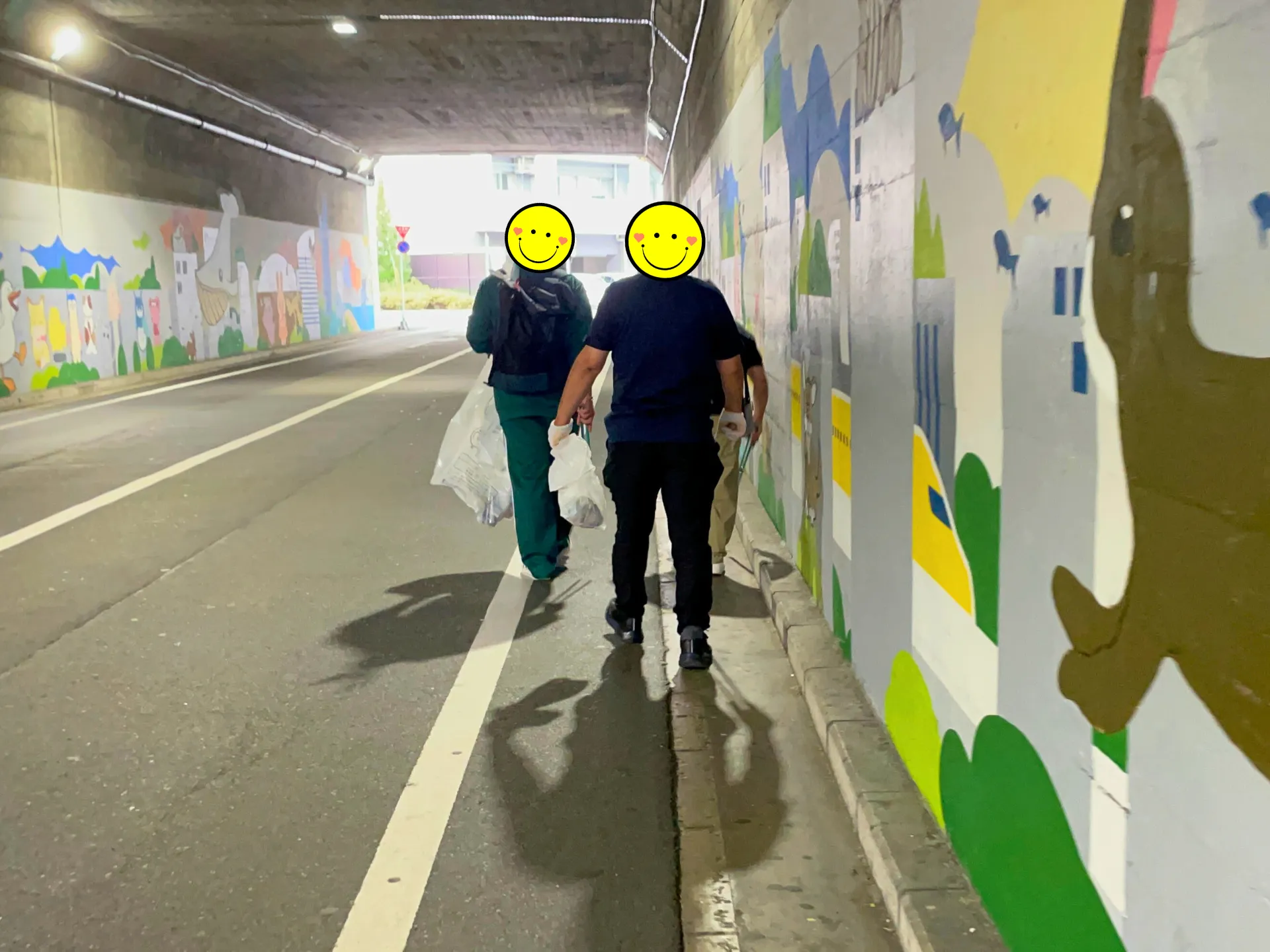 袋いっぱいのゴミを回収し、街を清潔に保つ達成感を共有しました。