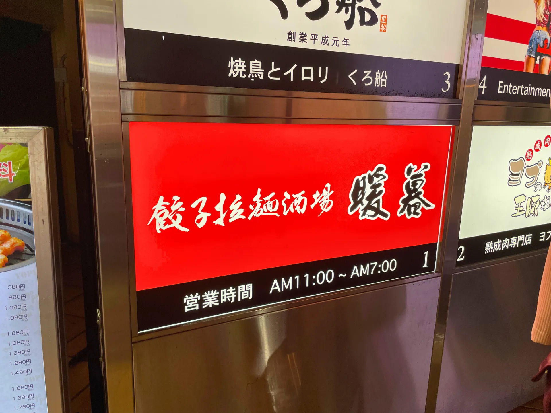 | 場 所 | 餃子拉麺酒場 暖暮(だんぼ)天神大名店 |