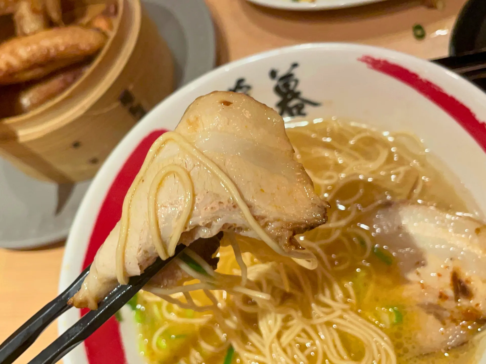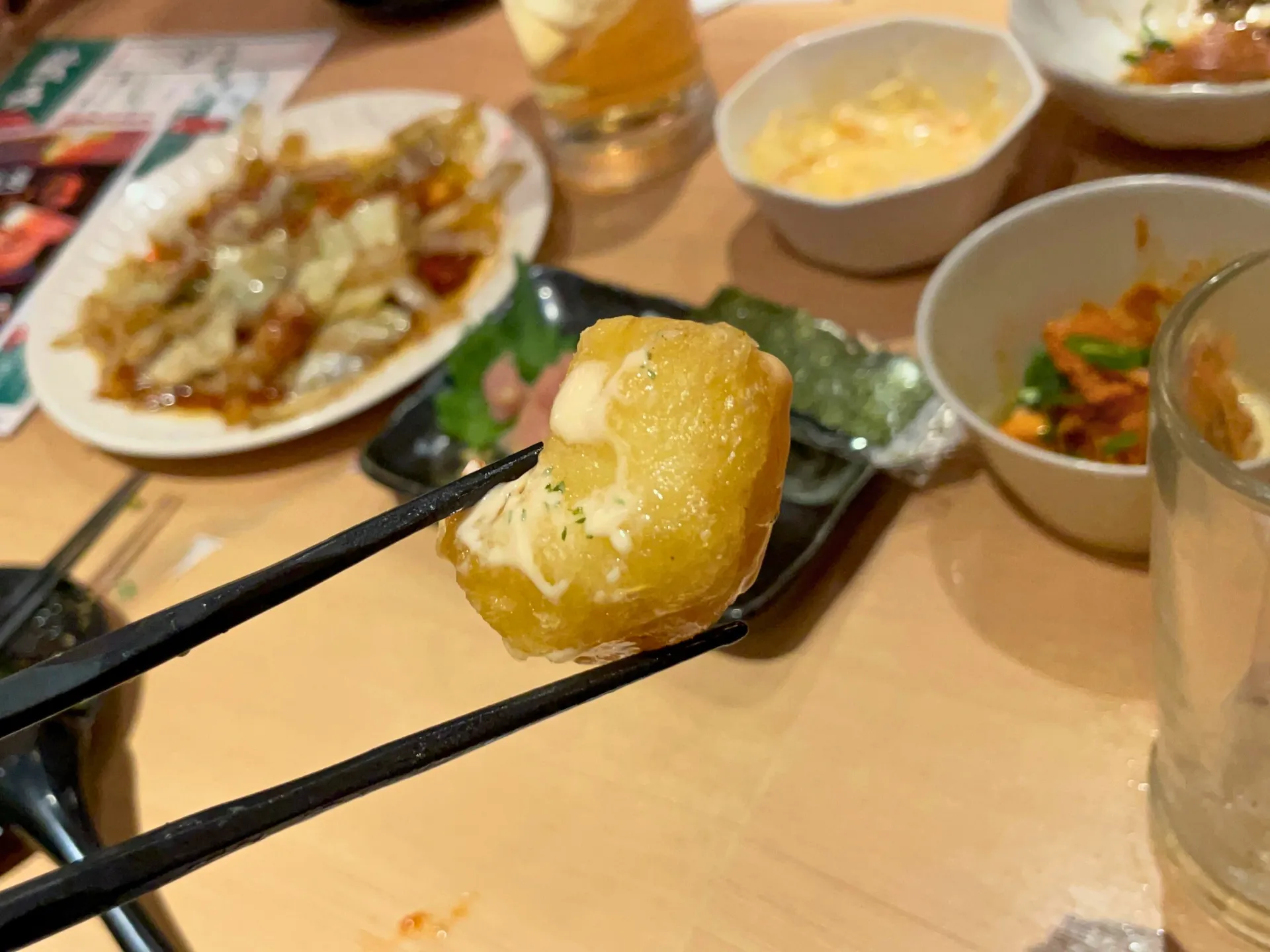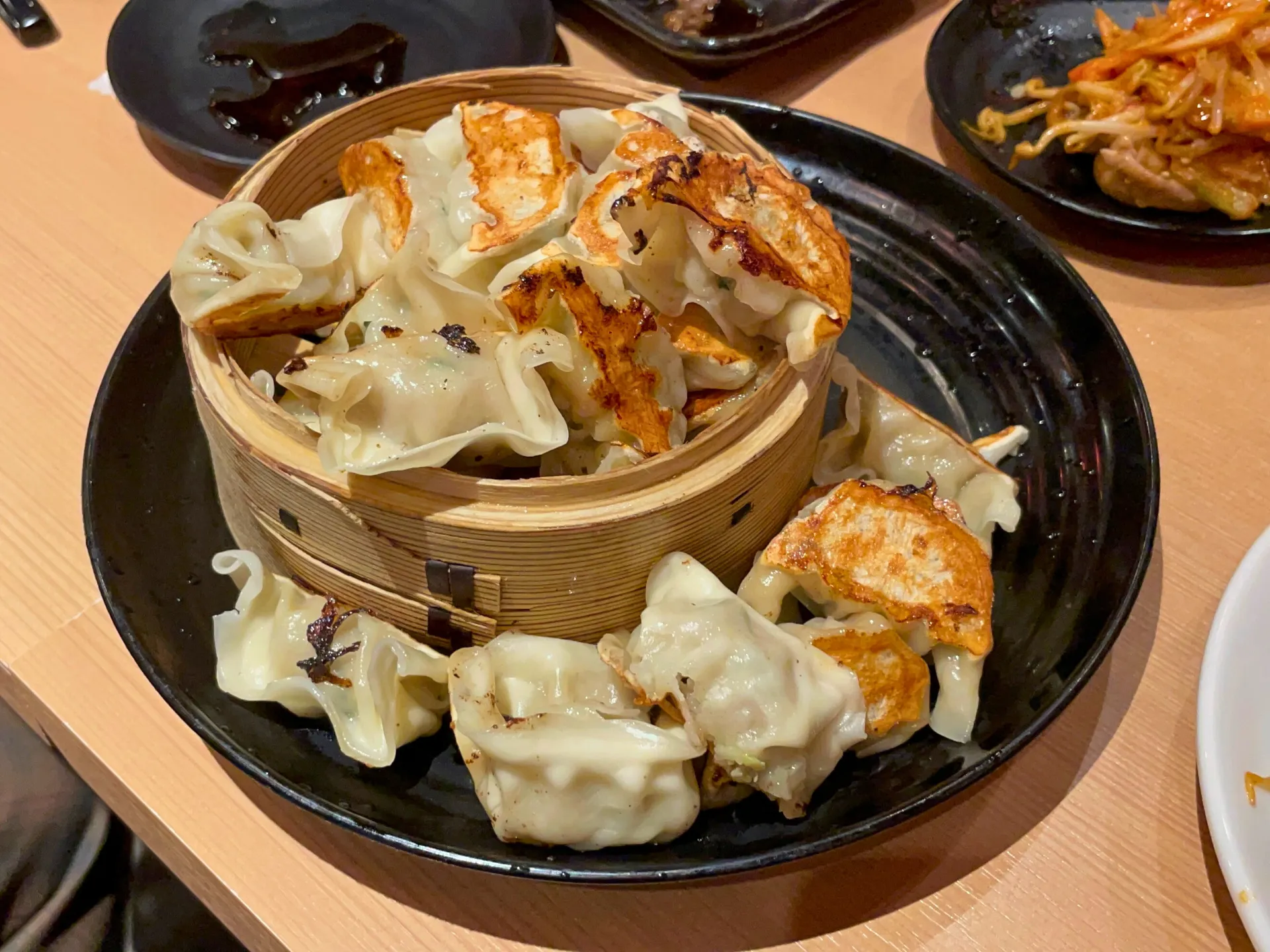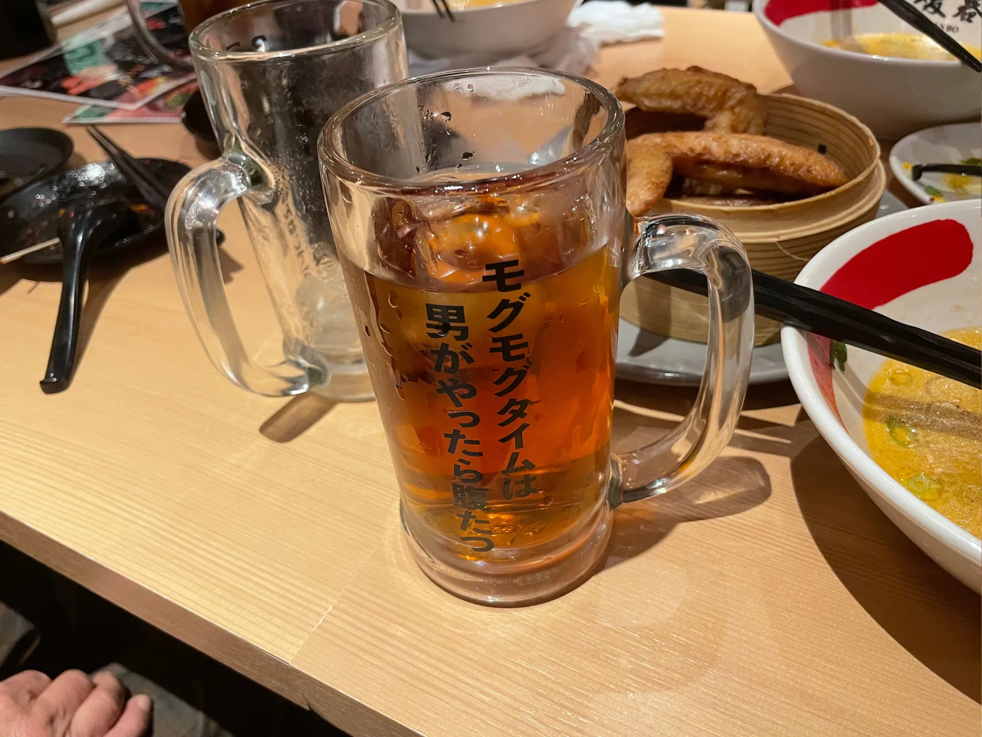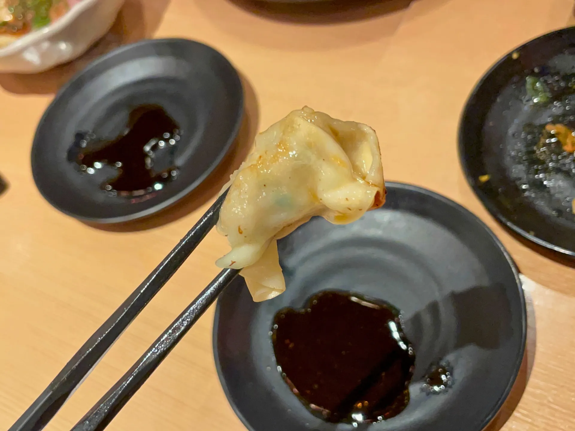 提灯の灯りが印象的な店内で、名物の「こぼれ餃子」がテーブルに運ばれると、その迫力に思わず笑顔がこぼれ、自然と会話が弾み始めました。