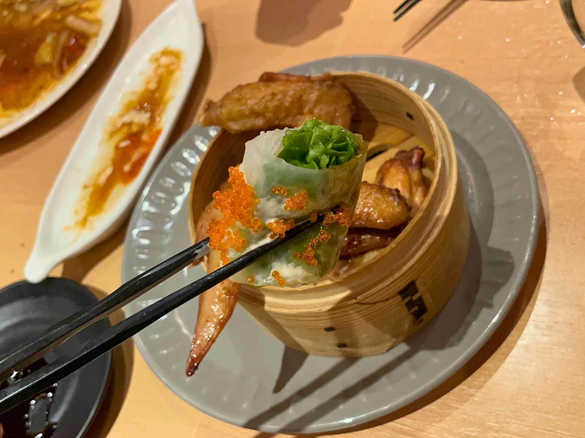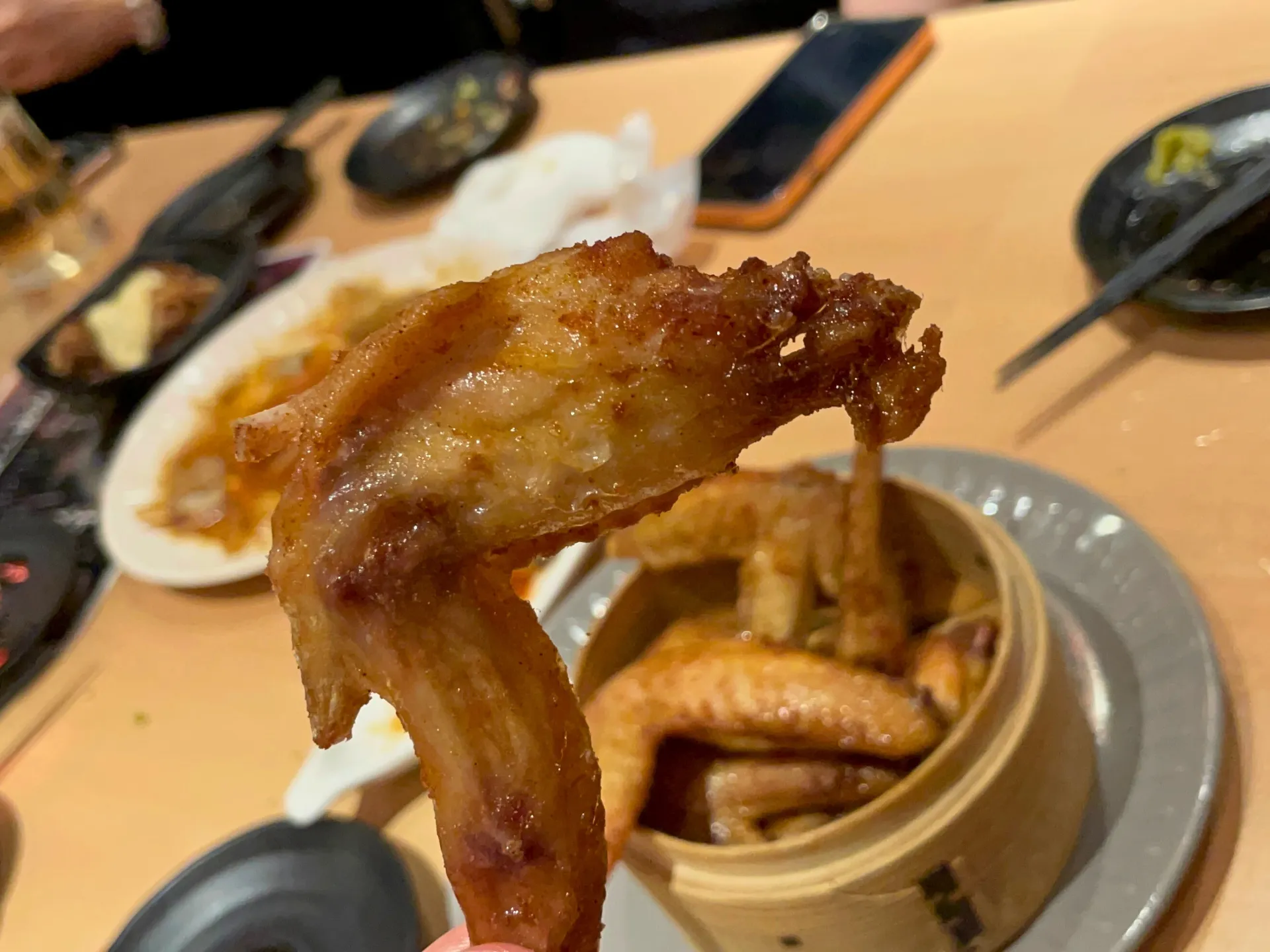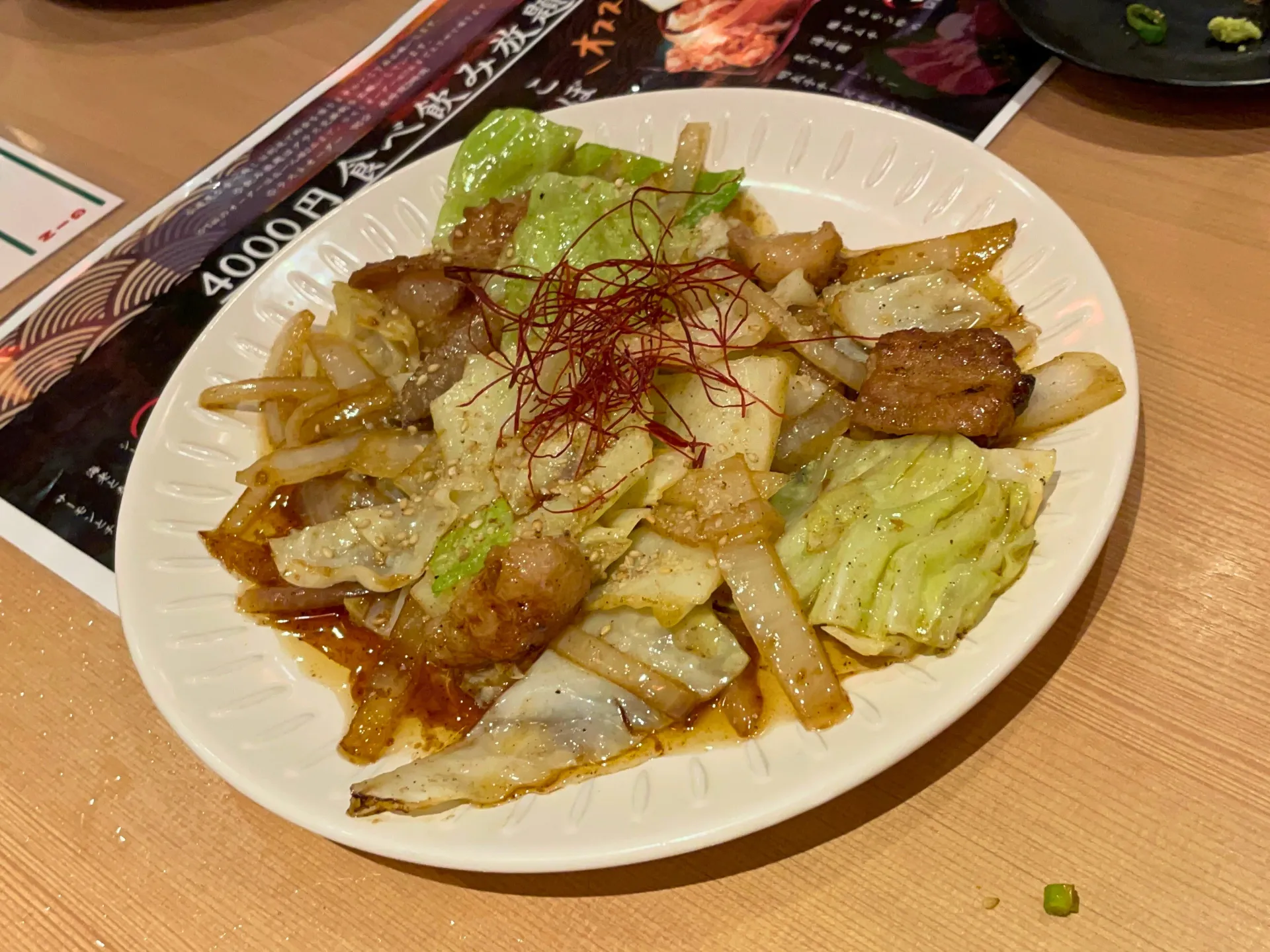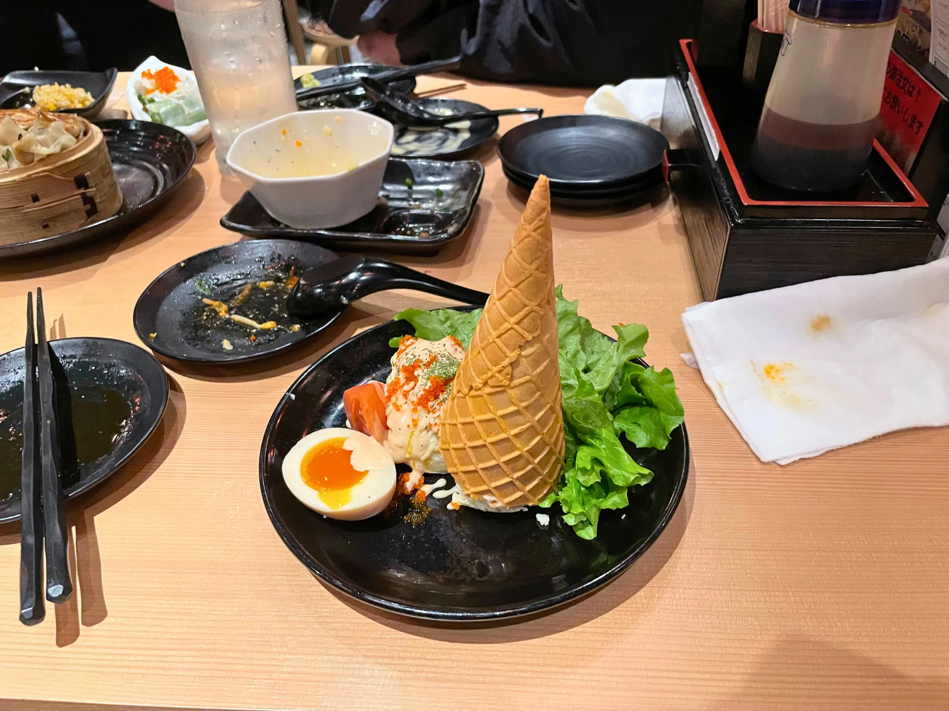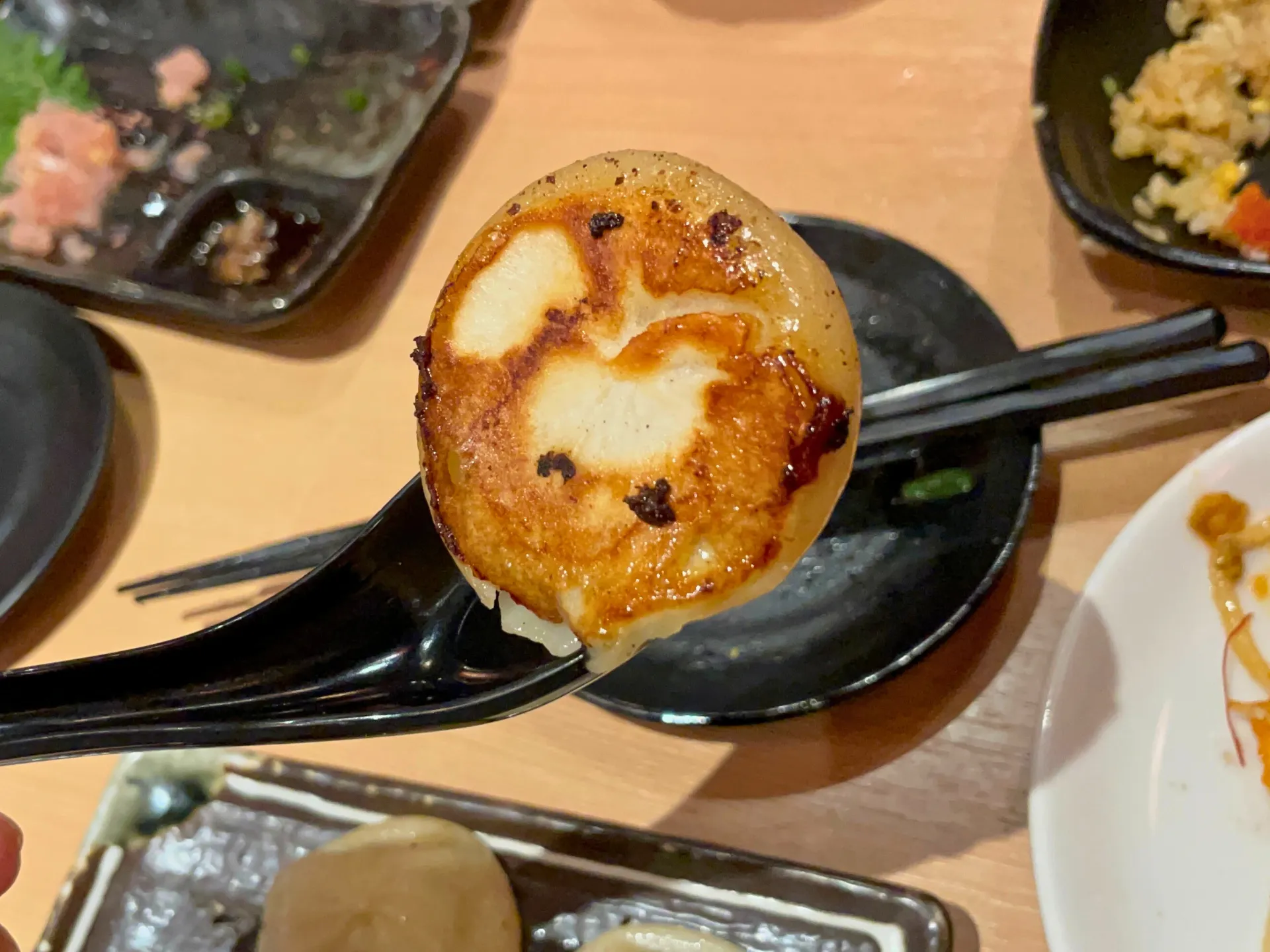 提灯の灯りが印象的な店内で、名物の「こぼれ餃子」がテーブルに運ばれると、その迫力に思わず笑顔がこぼれ、自然と会話が弾み始めました。