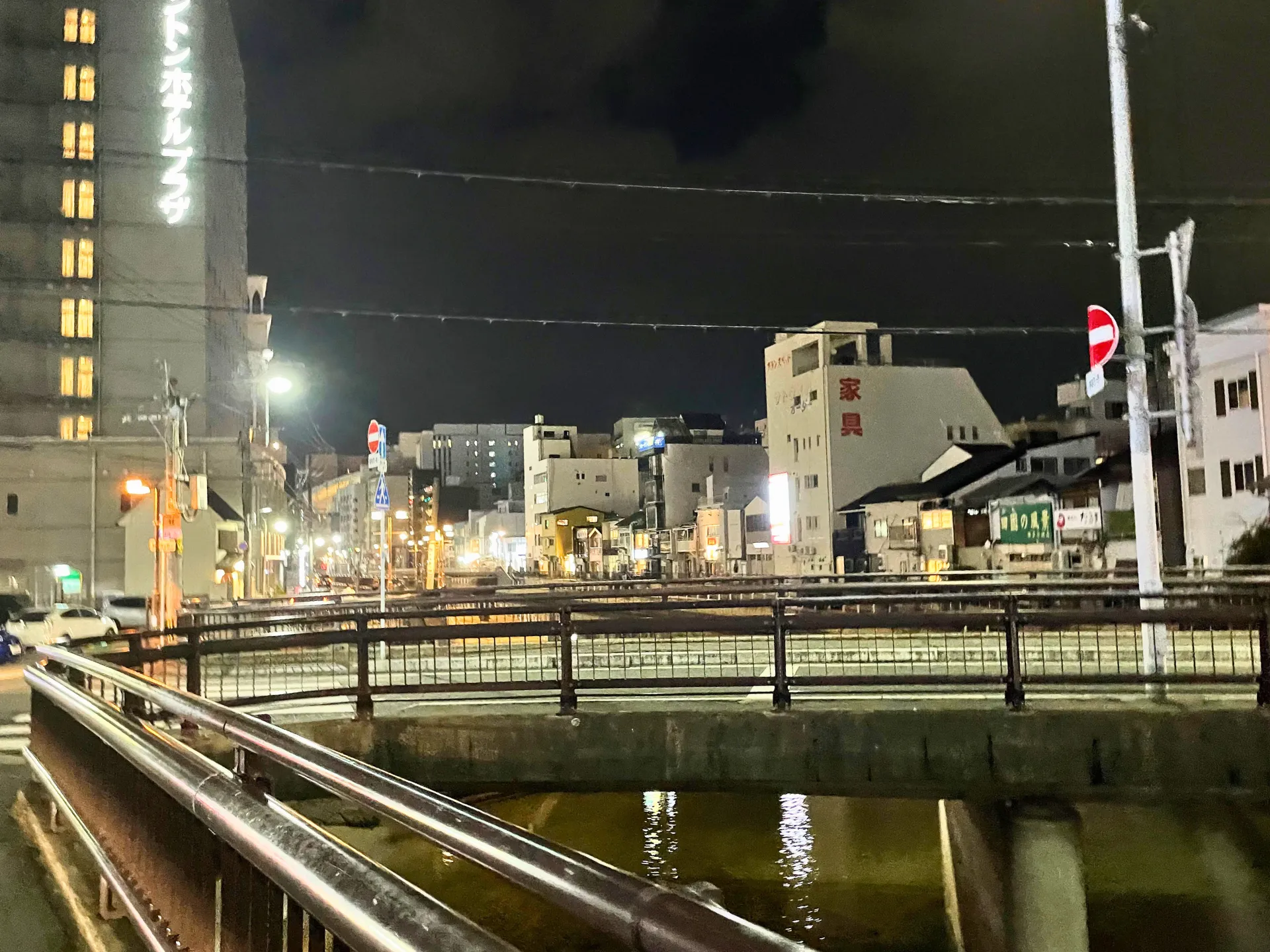 中洲の川沿いでは、ネオンが水面に映り、クルーズ船がゆっくりと進む景色を眺めながらのんびり散策。